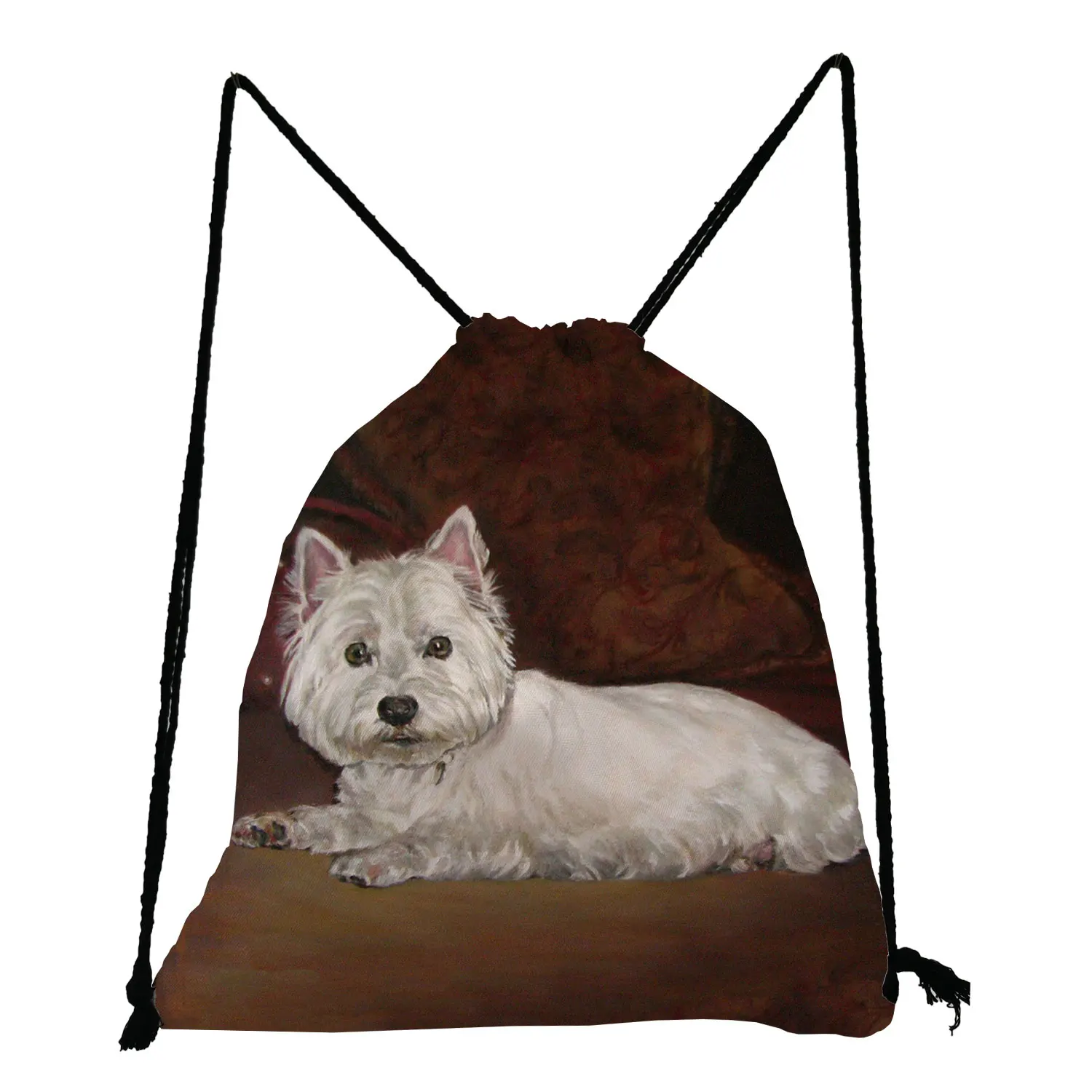 Уникальный дизайн Westie, квадратный рюкзак с рисунком собаки для студентов, милые животные, повседневный карман на шнурке, переносная сумка для хранения обуви
