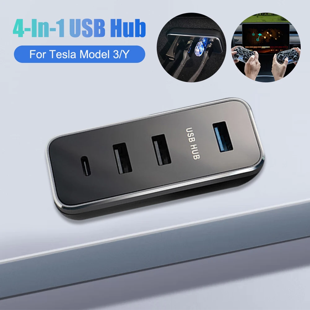 * 2. 4-в-1 usb-хаб разветвитель позволяет подключать видеорегистратор (верх usb-хаб в синем цвете), зарядить свой мобильный телефон, а также подключить два геймпада в одно и то же время.