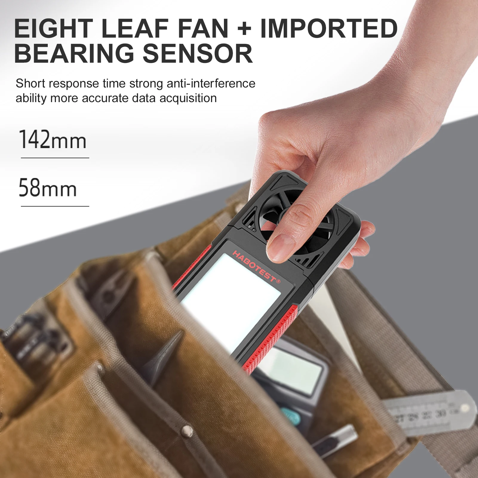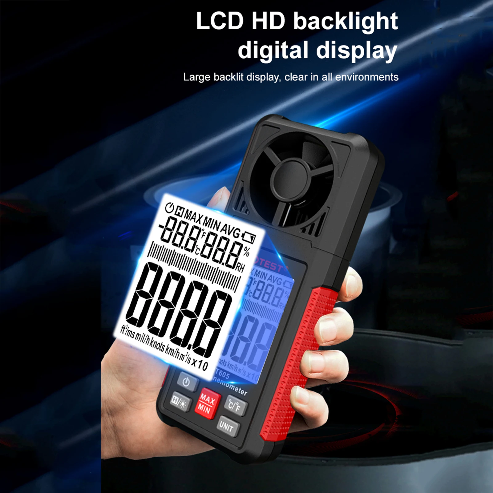 Ручной ЖК-экран: Этот датчик скорости ветра оснащен ЖК-экраном с подсветкой, может читать лучше и четче как под солнцем, так и в темноте. Компактный и легкий, вы можете держать его в кармане.