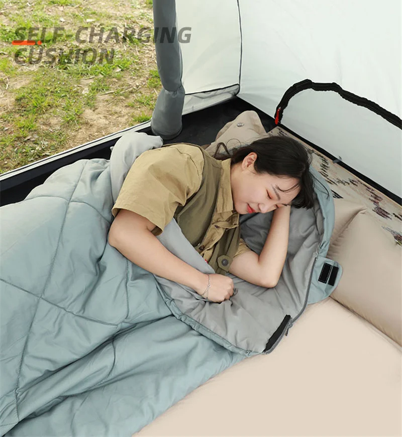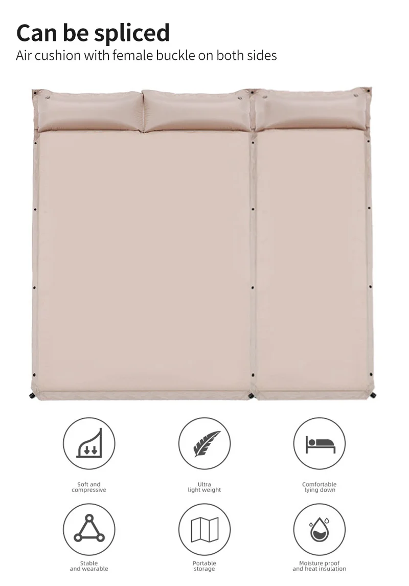 Самонадувание: насос не нужен, поверните быстрый клапан, чтобы надуть в течение нескольких минут. Свернуть коврик для кемпинга, чтобы сдуть. Подушку, прикрепленную к лагерной прокладке, можно использовать отдельно, Быстрая кнопка регулирует давление.