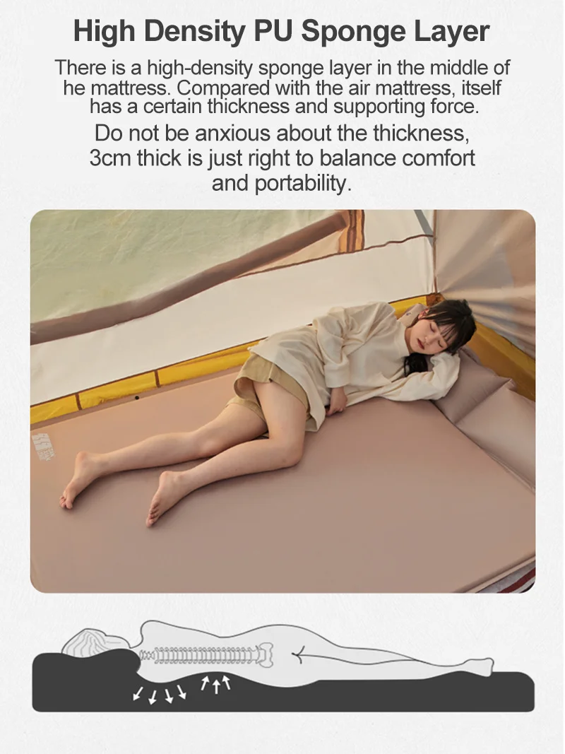 Отличная Изоляция: Водонепроницаемый ткань с 1,2 ''сделана из плотной пены. Кемпинг спальный коврик представляет экологически чистый материал без какого-либо пластика или химического запаха, этот Надувной Спальный Коврик помогает вам приятно спать ночью, предлагая твердую поддержку.