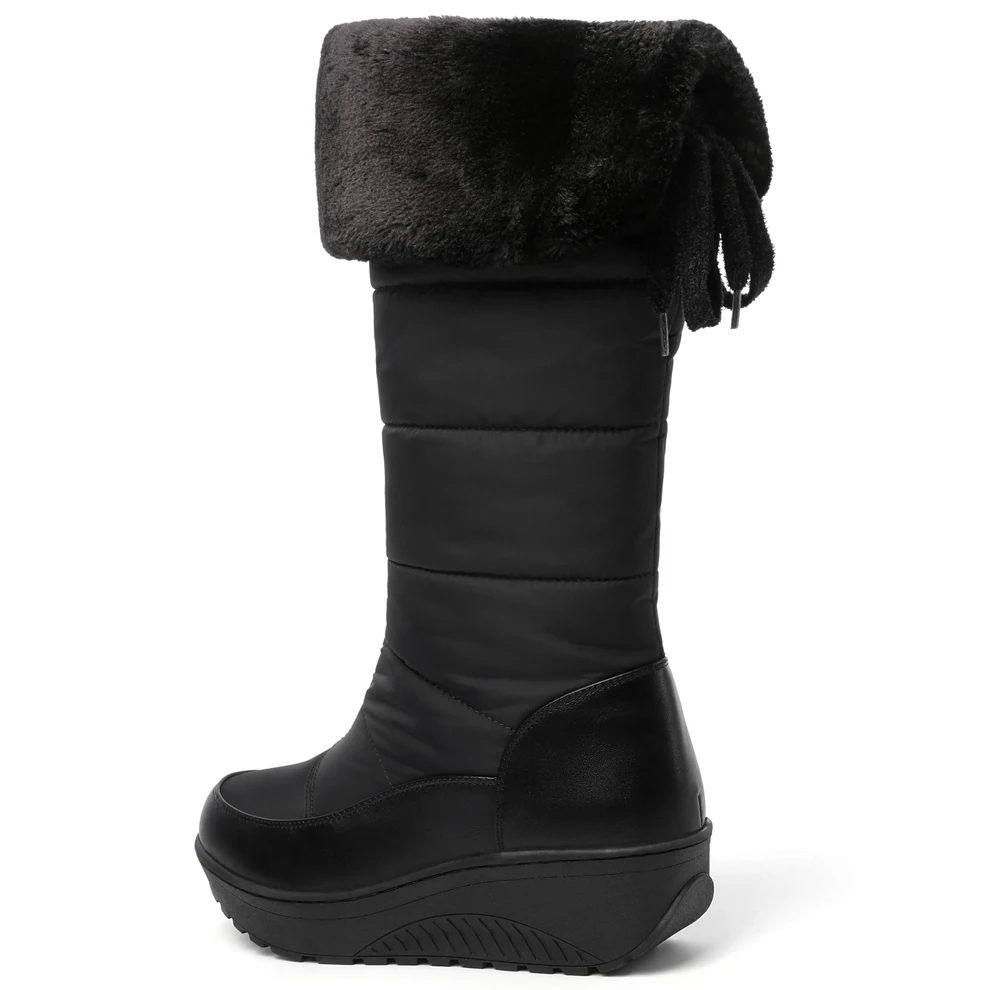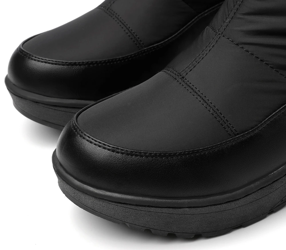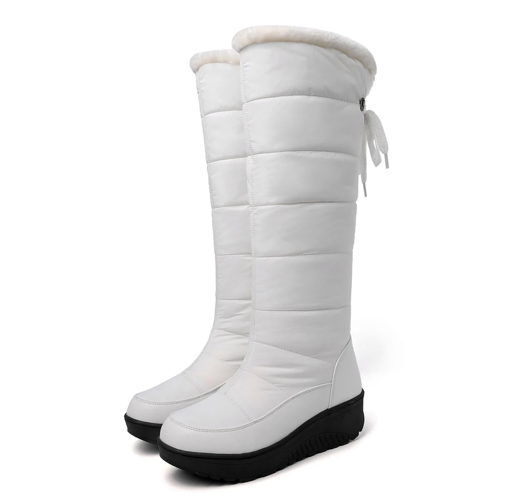 ▶Длинные сапоги изготовлены из ПУ и dow n cloth.com, удобные, дышащие, водонепроницаемые.