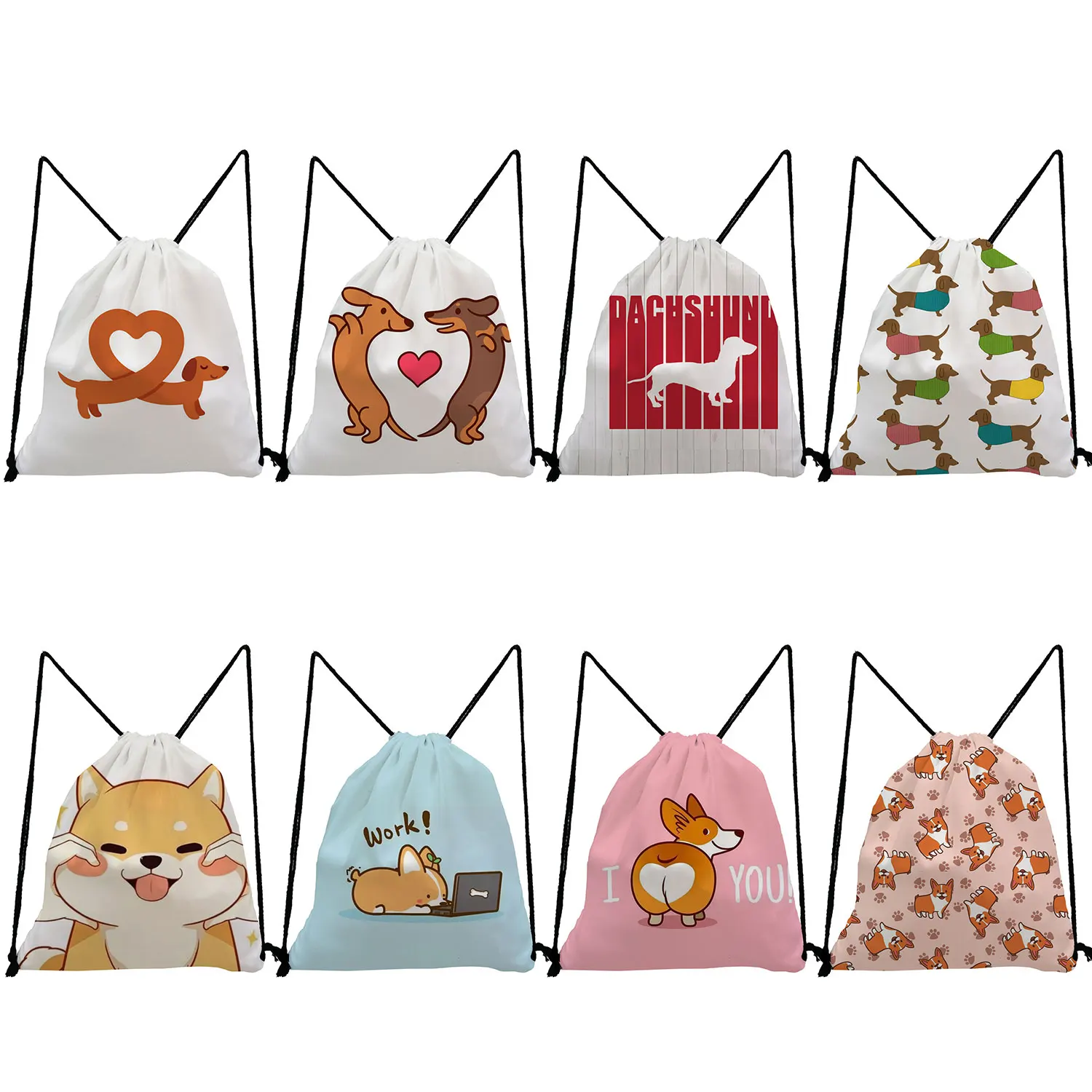 Рюкзаки с карманами на шнурке для студентов, мультяшный корги, принт "Такса", сумка для хранения, милые животные, высокое качество, переносные сумки для обуви