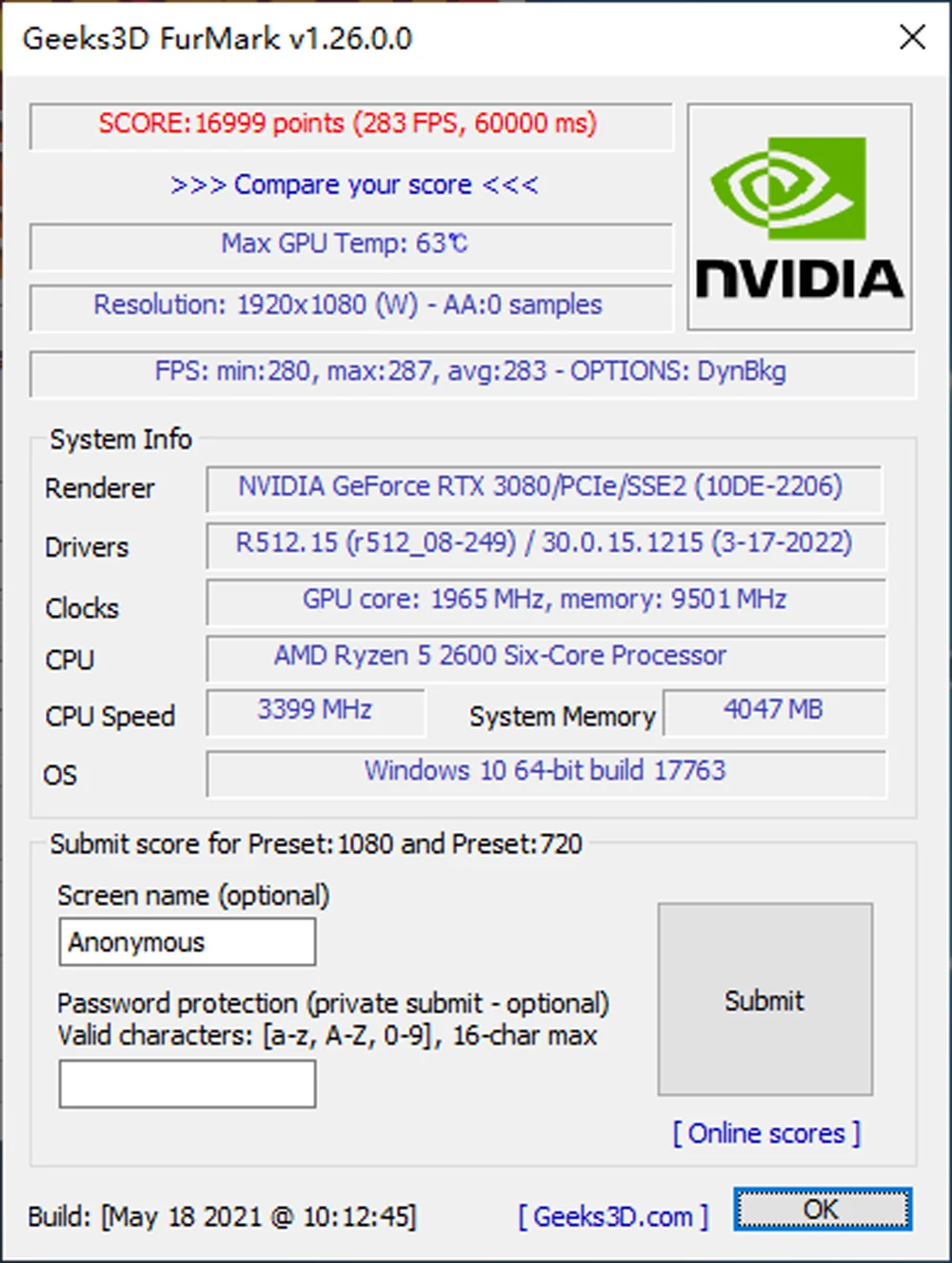 Geeks3D FurMark v1.260.0
