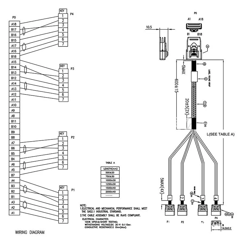 Модель: от SFF-8087 до 180 градусов 4 SATA
