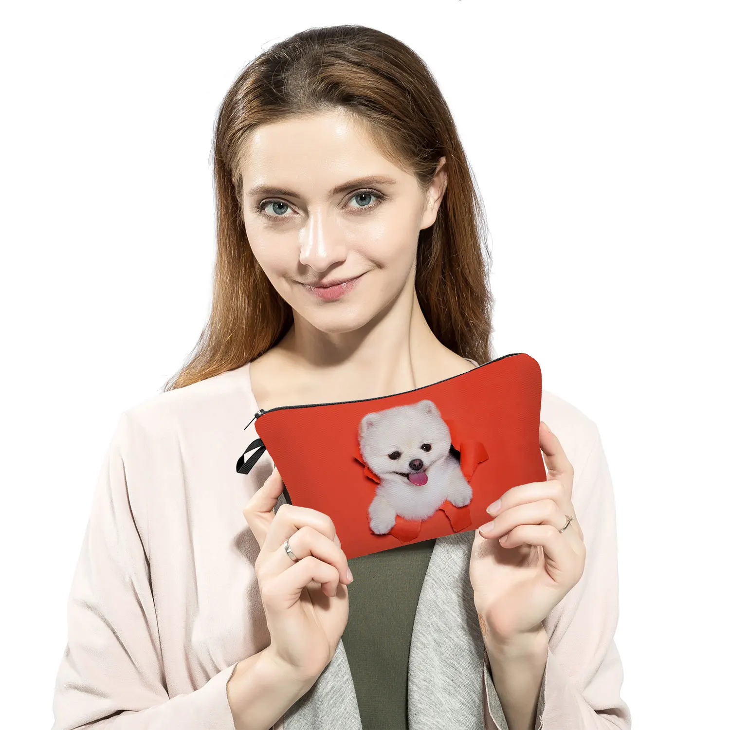 Женская косметичка с милой собачкой, чистый цвет, Большая вместительная косметичка, сумка-карандаш для девушек, косметичка с животным принтом для путешествий