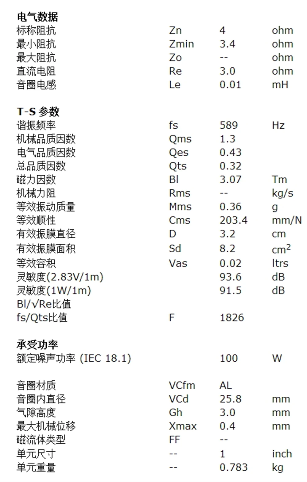 1, оригинальный Vifa XT25BG60-04 твитер динамик драйвер 4ohm/100 Вт двойной магнит вариант, Параметры динамика как показано ниже