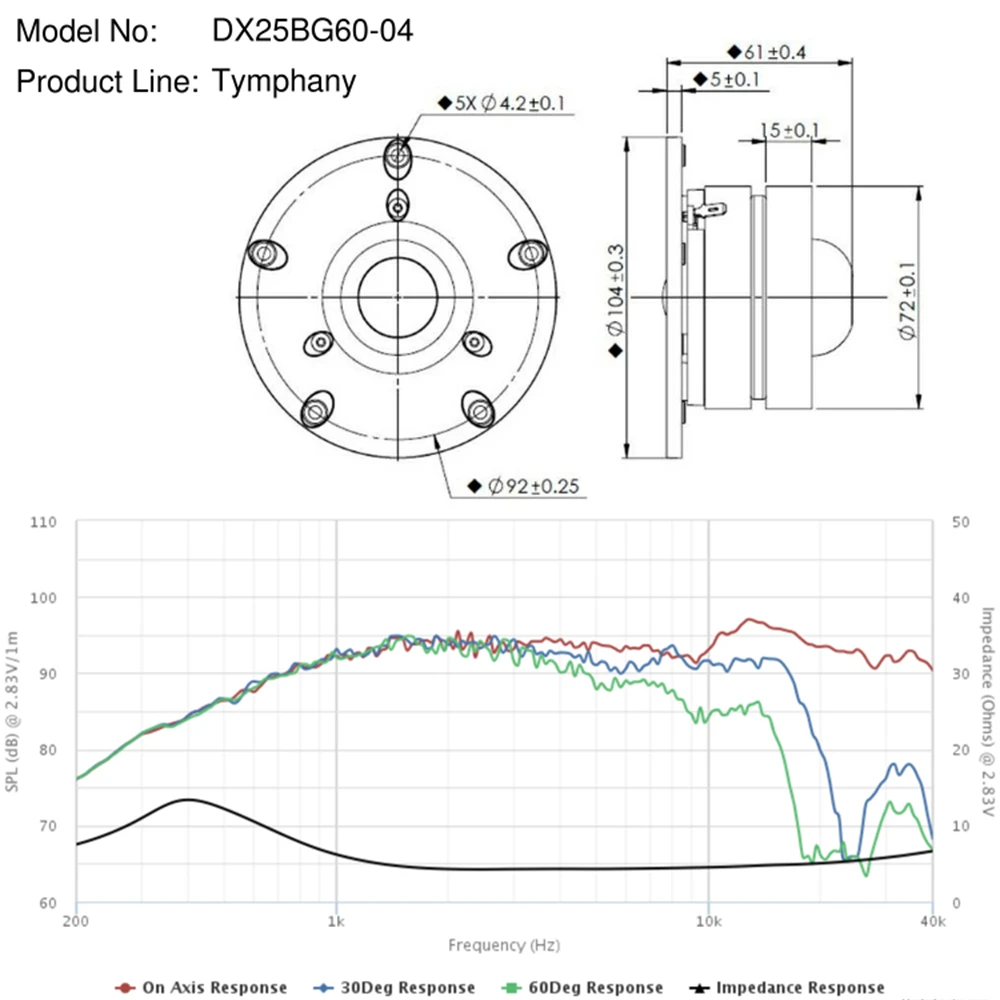 2, Vifa DX25BG60-04 Серебряный купольный твитер, динамик, драйвер, техническое описание (4 Ом/100 Вт)