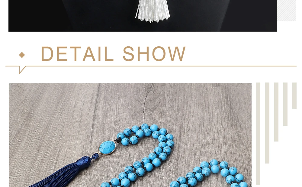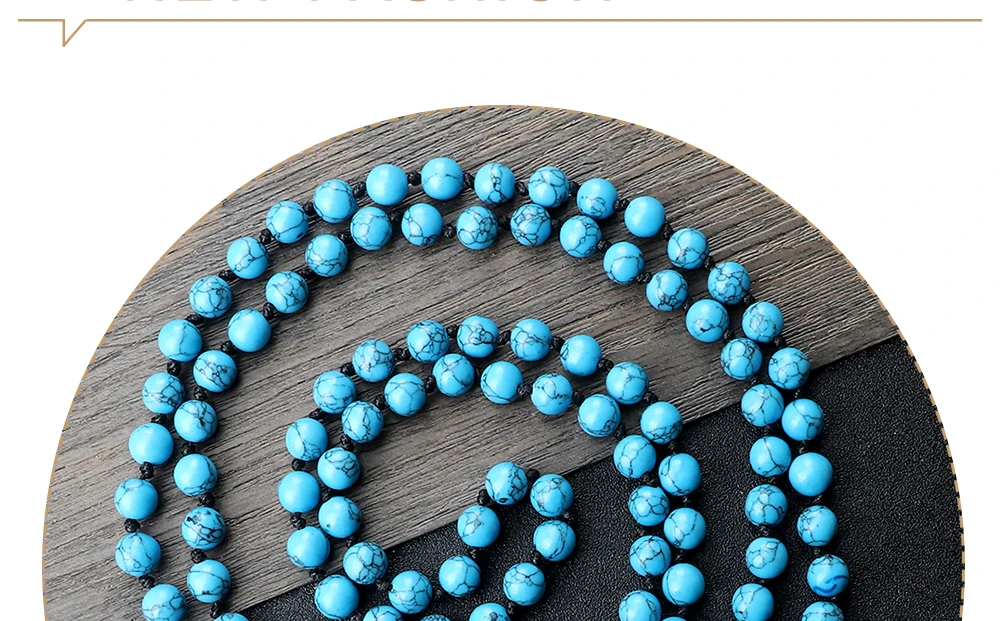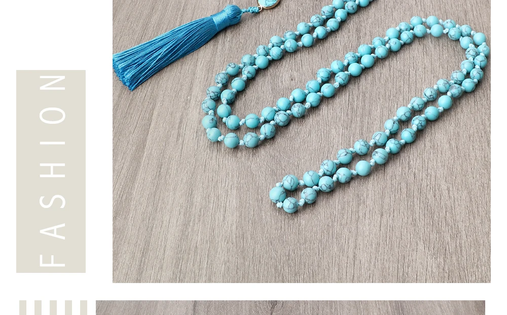 Ручная работа 8 мм натуральный камень 108 бусин ожерелье медитация Длинная кисточка подвеска богемные синие синтетические, сделанные из бирюзы женские мужские четки ожерелье ювелирные изделия подарок