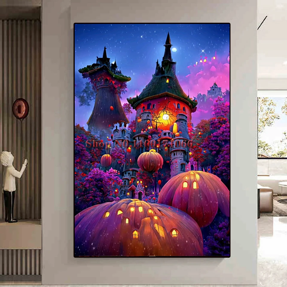 Новинка 5d алмазная картина Хэллоуин Тыква фонарь замок вышивка крестиком фантазия пейзаж мозаика картина домашний декор