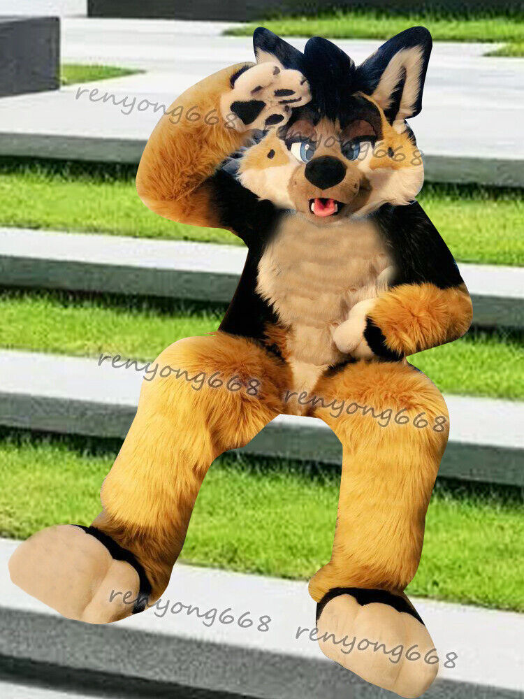 Длинный мех лисы хаски собака талисман костюм костюмы Косплей вечернее платье для взрослых Новый Пожалуйста, оставьте сообщение о росте и весе послеS : 166 см-170 см (5'5'' - 5'7'')