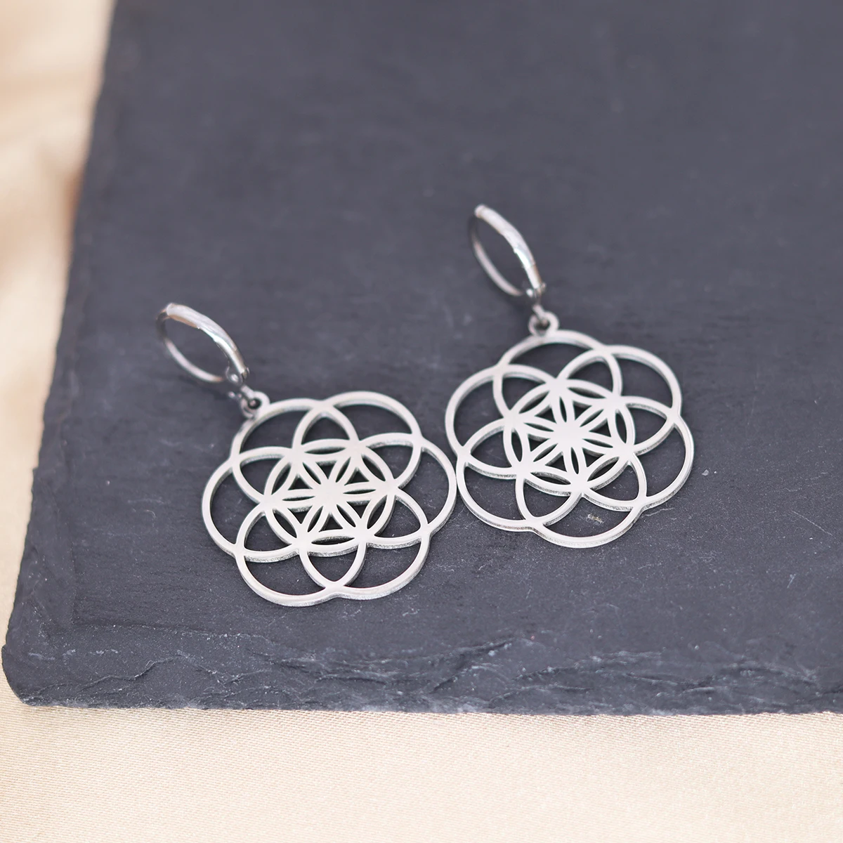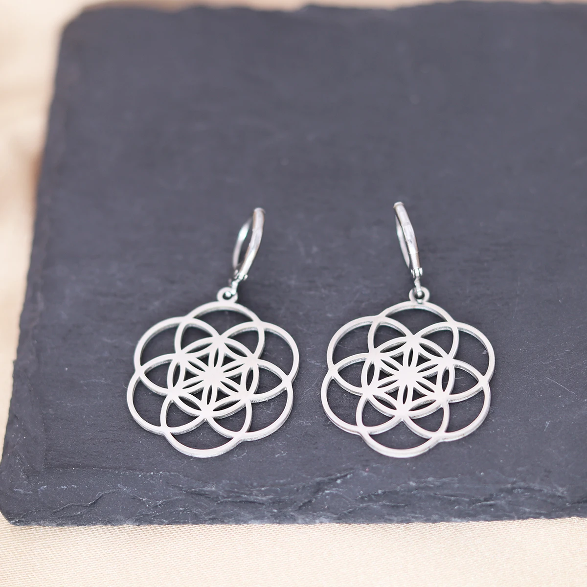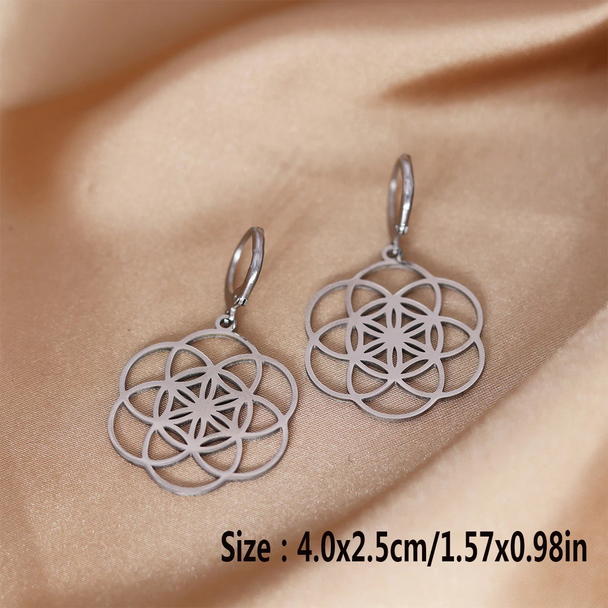 Чандлер цветок серьги с деревом жизни геометрический узор серьги-кольца шесть листьев клевера ювелирные изделия из нержавеющей стали для женщин