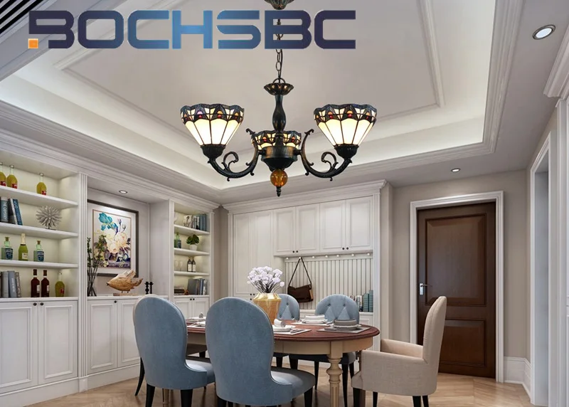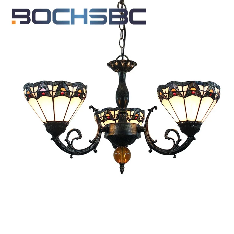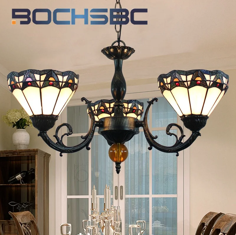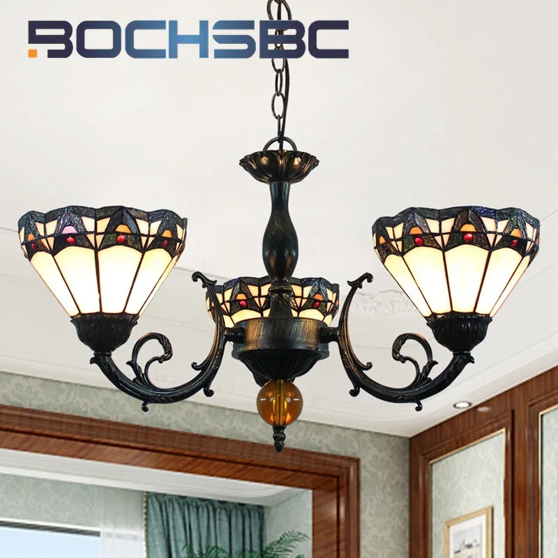 BOCHSBC стиль Тиффани витраж Винтаж средиземноморская люстра с 3 головками столовая спальня прихожая светодиодный Декор подвесной светильник