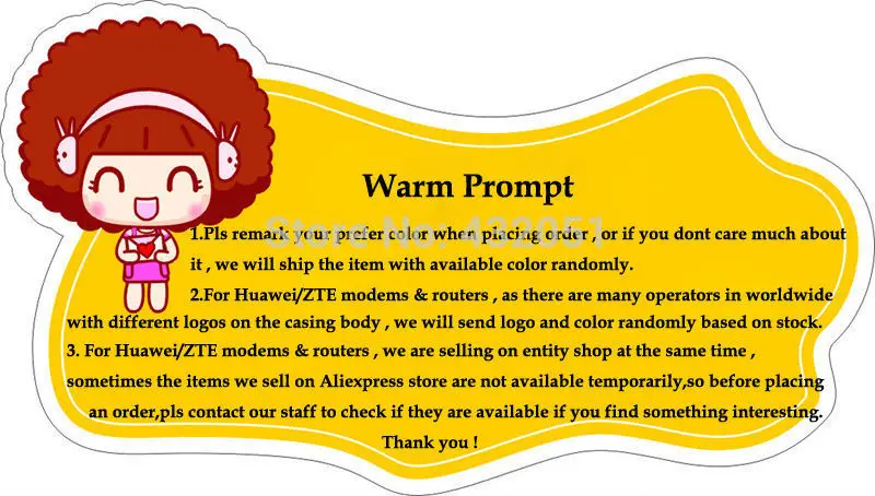 Уважаемый клиент, из-за различных операторов по всему миру, так что существует много различных логотипов на модемах huawei, мы отправим модемы наугад в наличии!