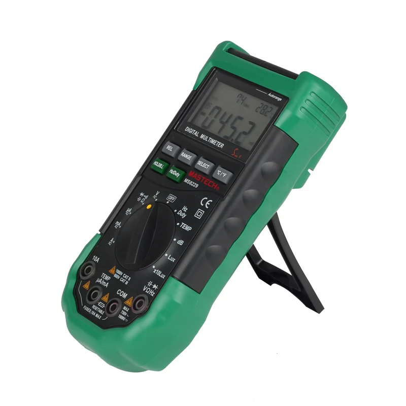 Недавно выпущенный Sinometer MS8229 DMM является улучшенной и модифицированной версией широко похвалившей Mastech MS8209, она сочетает в себе мультиметр, измеритель уровня звука, термометр, люксовый измеритель, измеритель влажности все в одном. Также он упакован со многими хорошими функциями, такими как отображение температуры и влажности, звук и светильник, предупреждающий о гнездах и ЖК-экране с подсветкой.