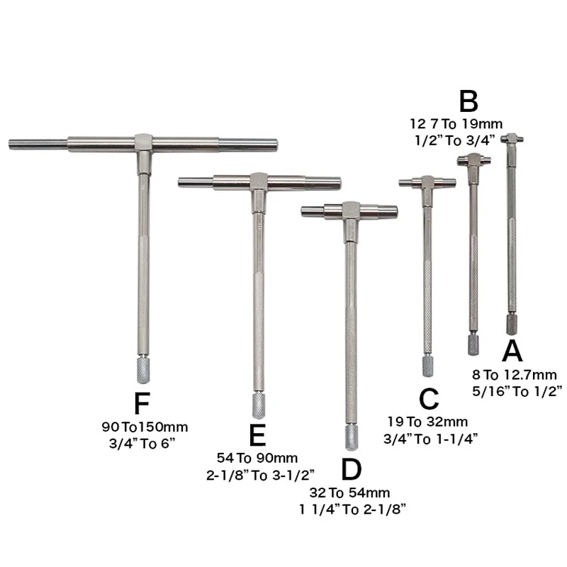 5. Телескопические измерители используются для измерения внутреннего диаметра или внутреннего сквозного паза заготовки методом сравнения.