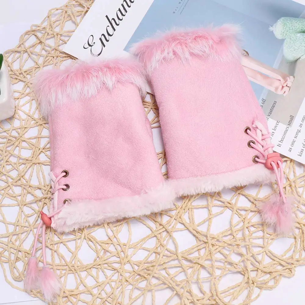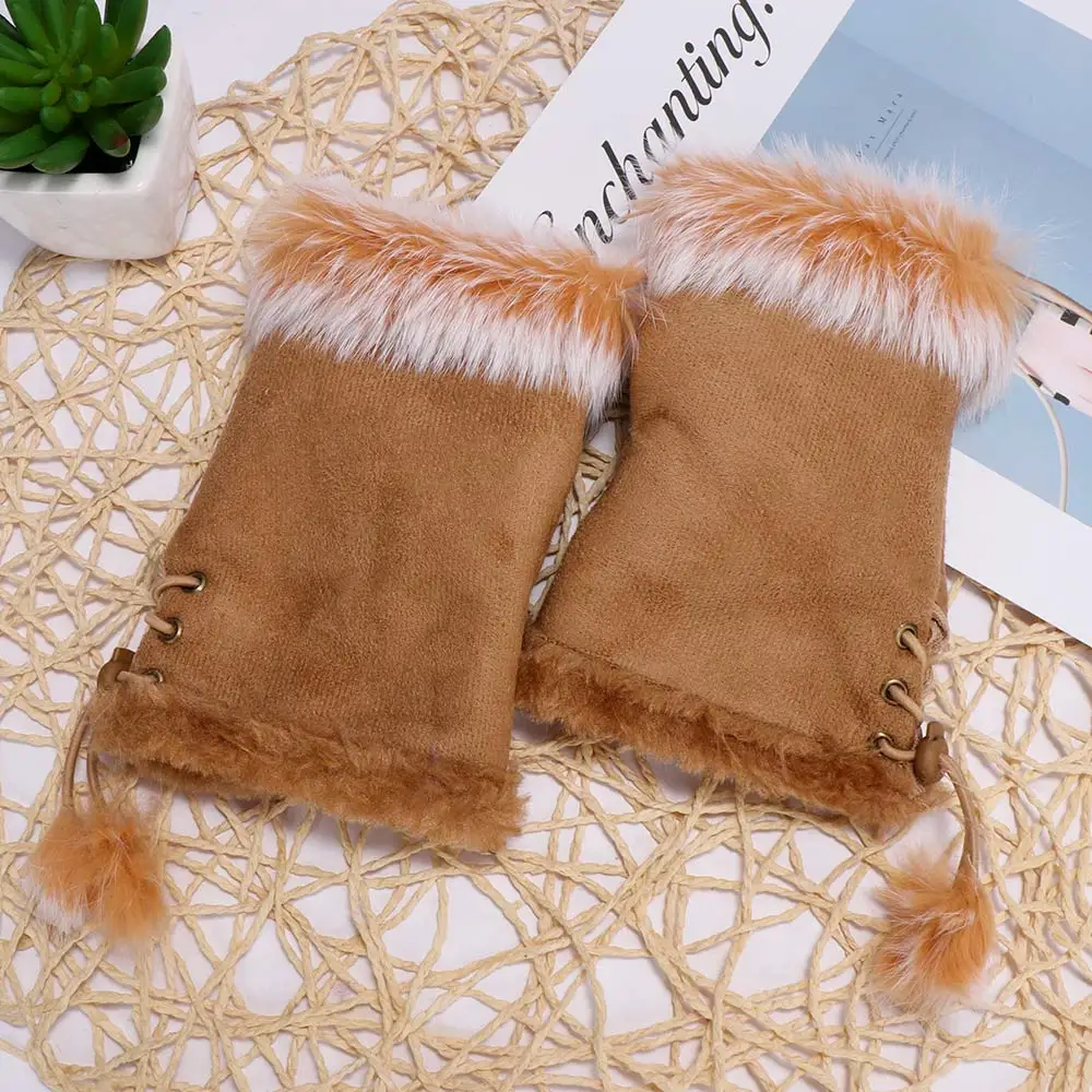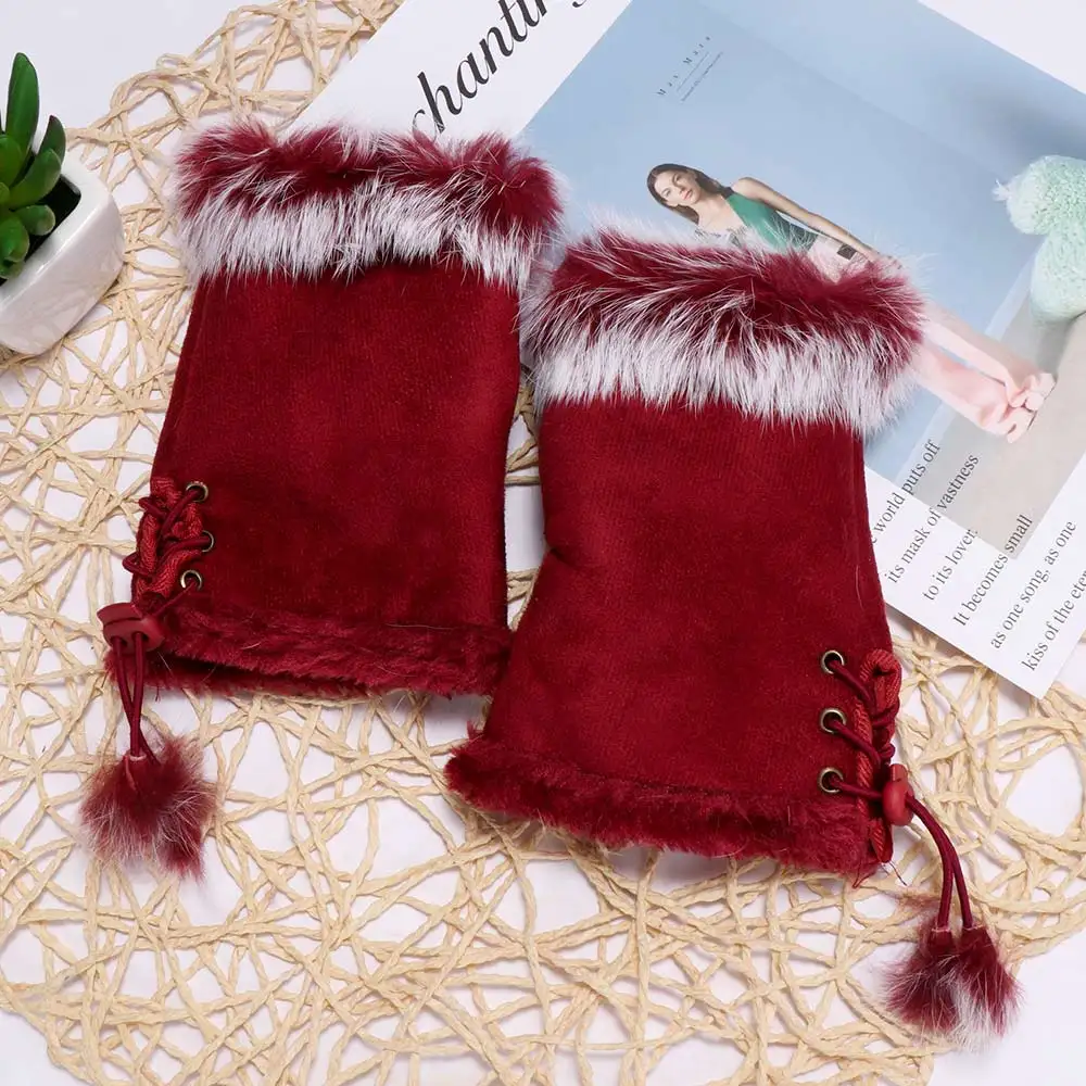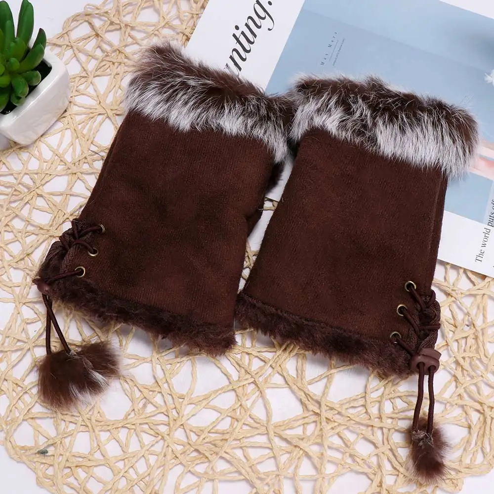 Новые теплые зимние женские кожаные перчатки без пальцев с кроличьим мехом, подарок