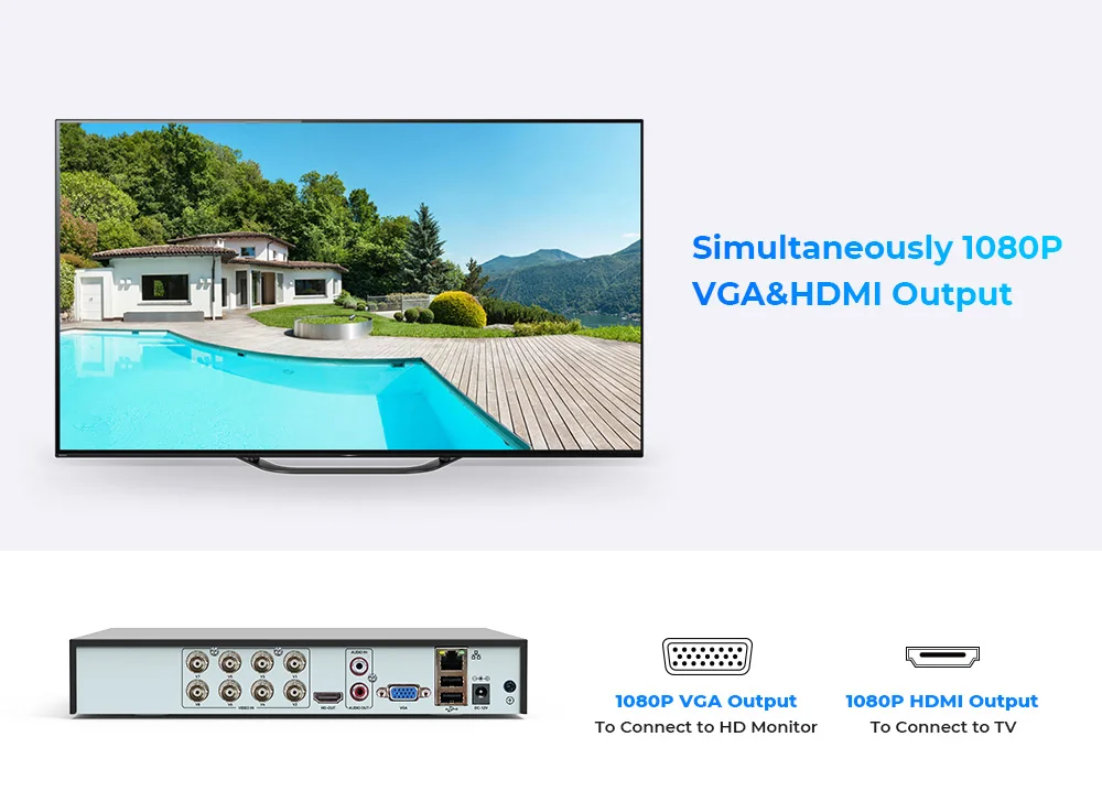 Поддержка 5 видов различных камер (аналоговая камера, AHD камера, CVI камера, TVI камера, IP камера), это обеспечивает гибкие варианты комбинации;