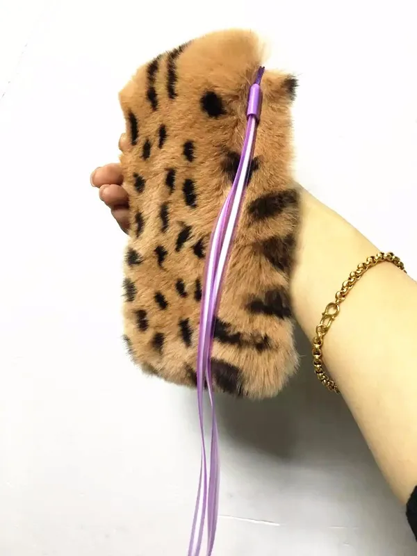 Чехол для телефона с натуральным кроличьим мехом и леопардовым принтом для Iphone 11 12 13 7 Plus X XR XS Samsung Galaxy Note 7 5 4 3 2 S7 S6 Edge Plus S5 S4 S3