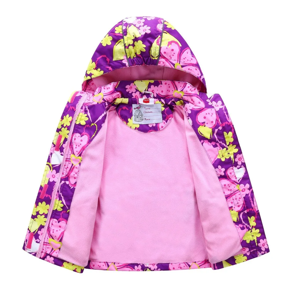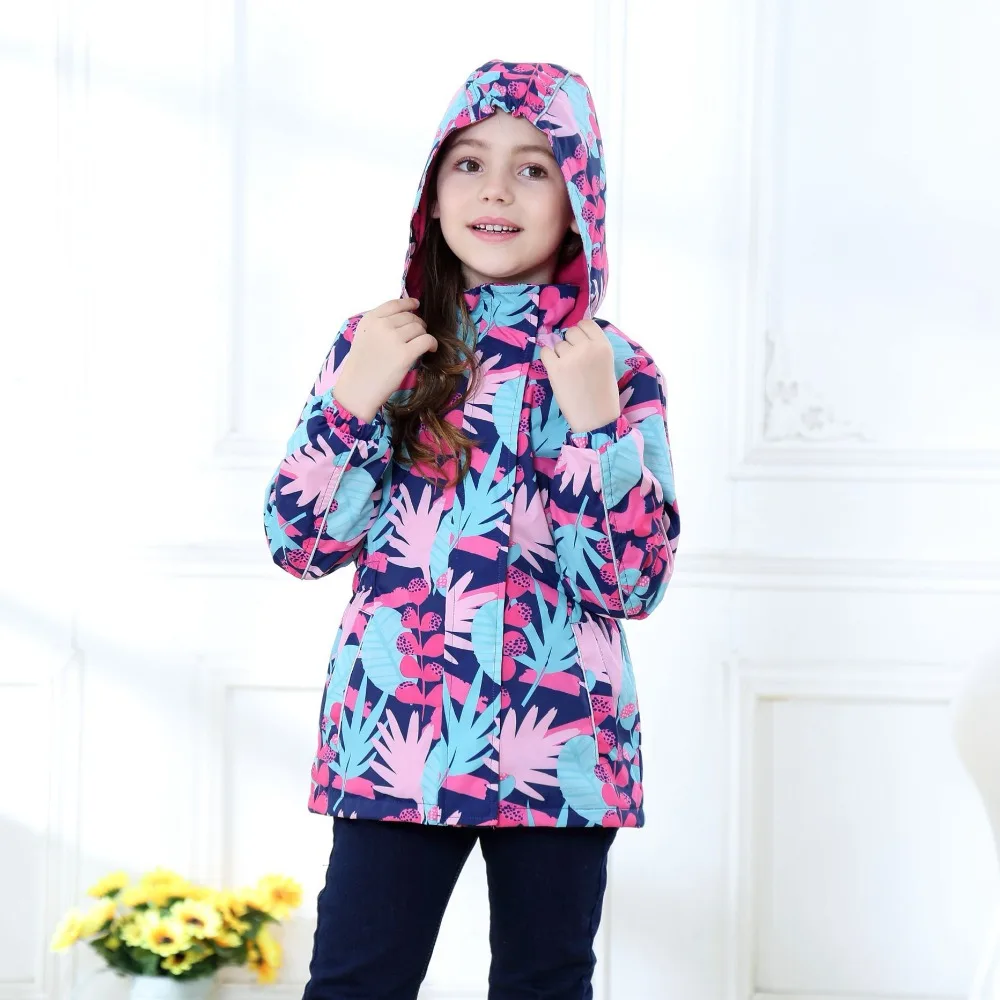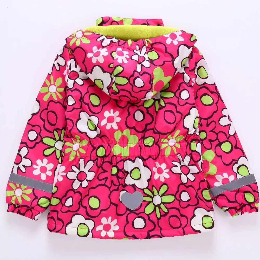 Детская парка с цветочным принтом для девочек, ветрозащитный водонепроницаемый Тренч в морском стиле, демисезонная куртка с флисовой подкладкой, модные пальто для девочек, верхняя одежда