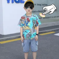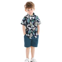 Одежда для мальчиков от 1 года до 7 лет летний спортивный комплект из 2 предметов, модная рубашка с короткими рукавами и цветочным принтом + Пляжные штаны Качественная детская одежда
