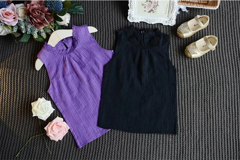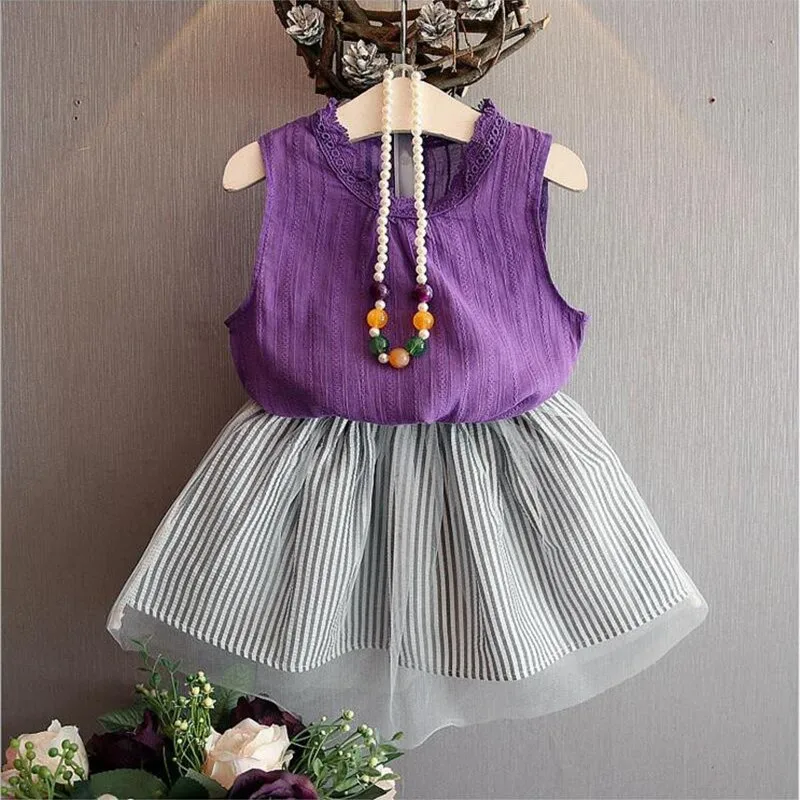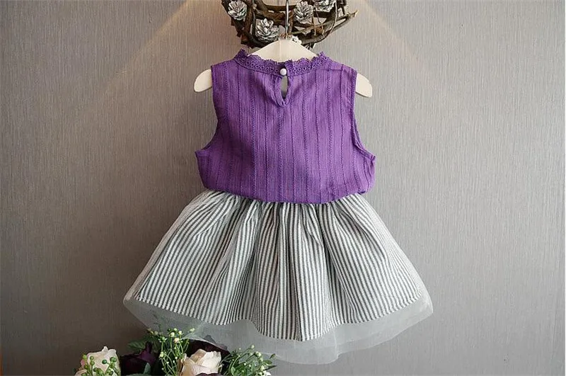 Комплекты одежды для девочек коллекция 2021 года, Новое поступление, весенне-летние детские комплекты одежды без рукавов с круглым вырезом комплект одежды для детей, футболка и платье, От 2 до 6 летМатериал: лен, вуаль
