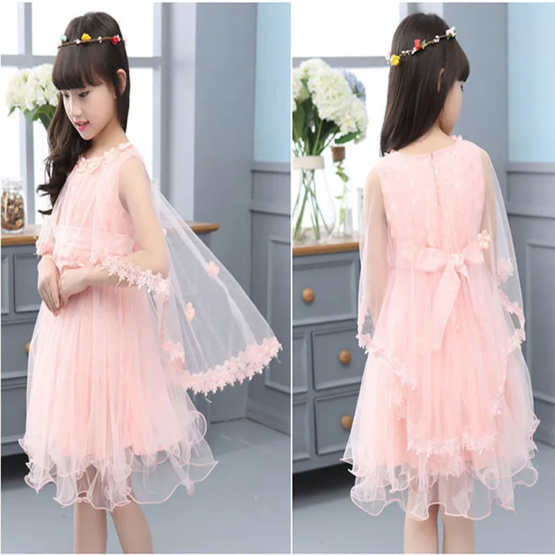 Платье для девочек; Модное милое платье принцессы из пряжи и тюля; От 4 до 10 лет из двух предметов; Качественная детская одежда для отдыха