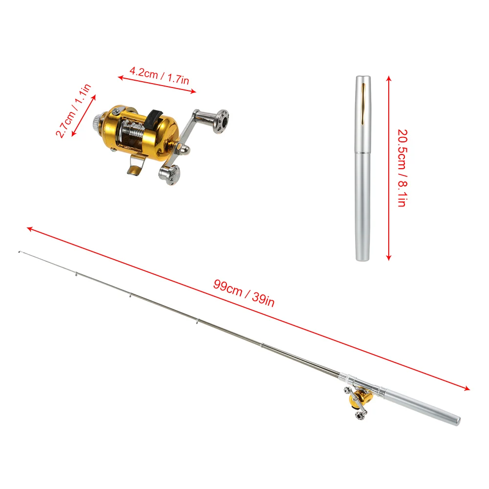 Раздвижная Удочка размера ручки, идеально подходит для ситуаций, когда неудобно использовать полноразмерные удочки. Закрытая длина: 20,5 см (8,1 дюйма). Увеличенная длина: 99 см (39 дюймов).
