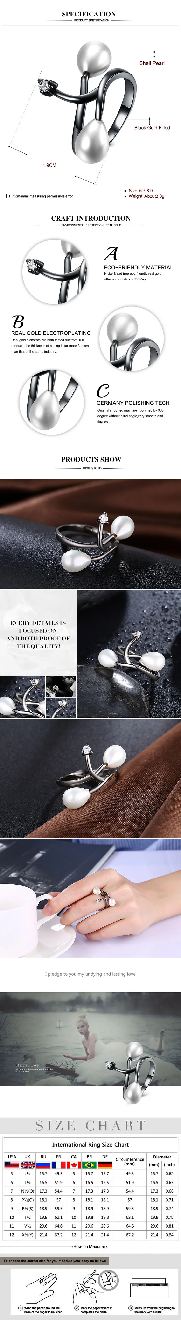 Название продукта:Простой Витой дизайн, двойные синтетические жемчужные кольца в виде ракушек для женщин, уникальные черные Позолоченные циркониевые ювелирные изделия