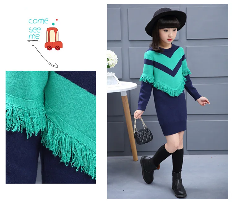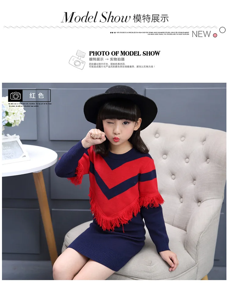 Новинка 2017 детская одежда для девочек на осень-зиму вязаный свитер платье
