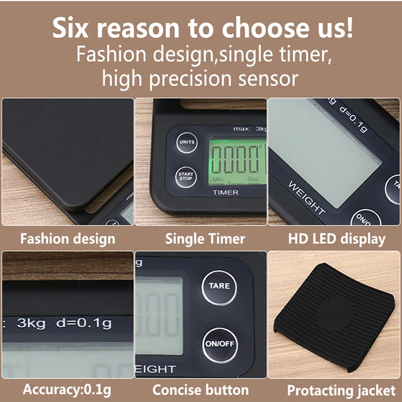 Портативный 3 кг 0,1 г капельного Кофе весы с таймером электронные цифровые Кухня весы новый дизайн высокой точности ЖК-дисплей электронные весы