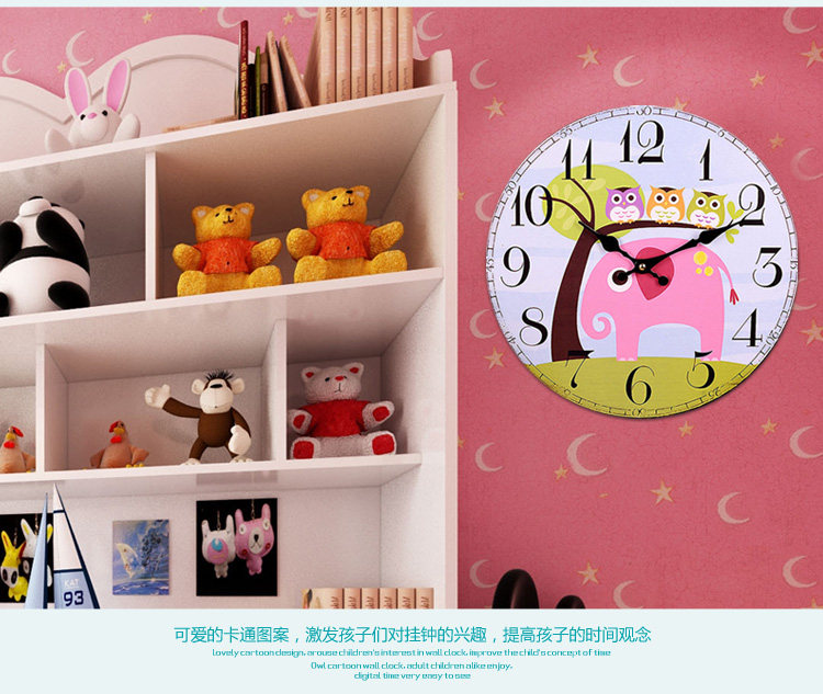 Тишину мультфильм настенные часы милые Сова Слон животные Часы настенные украшения тикающие бесшумные часы для детей гостиная 12 дюймов Особенности