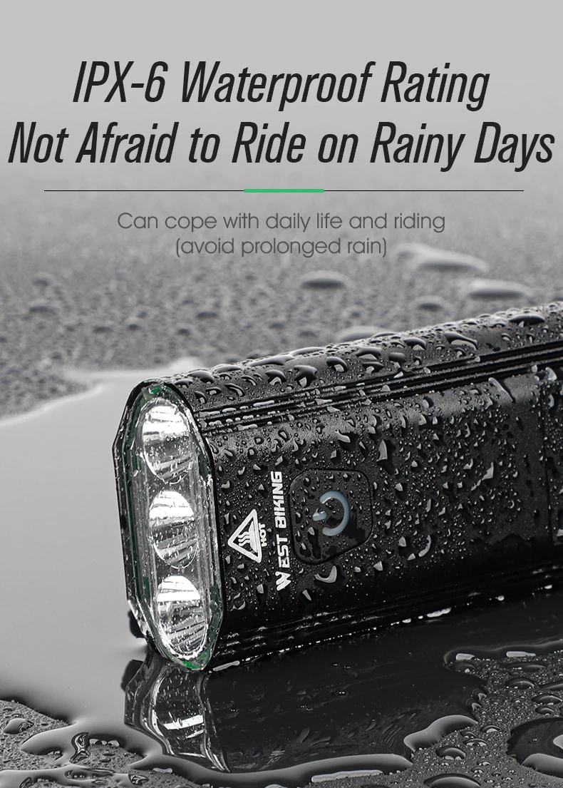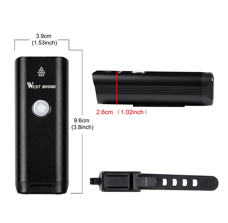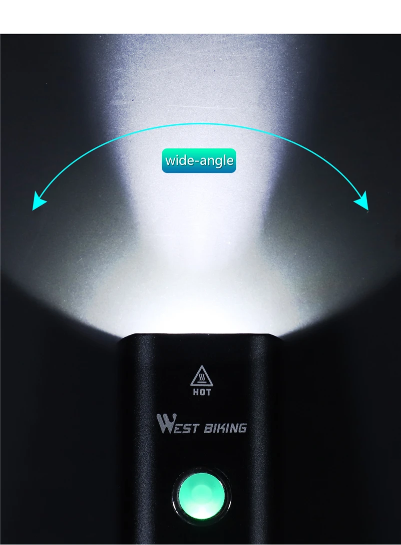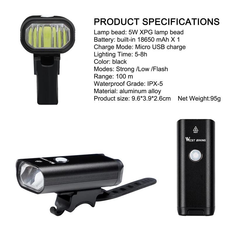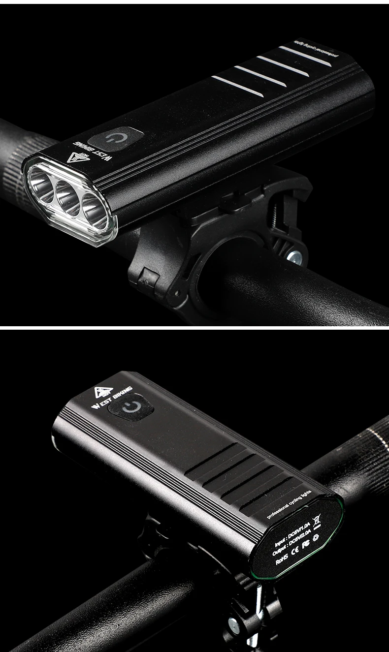 Название Рэнд: WEST BIKING Материал: алюминиевый сплав Аккумулятор: 5200 мАч Время работы: 6,5 ~ 18 часов Время зарядки: около 5 часов Рабочее напряжение: 3,7 V Размер: 101*42*24 мм Светодиодный: 3 * T6 светодиодный 5 светильник режим ing: высокий светильник/средний Светильник/низкий светильник/Стробоскоп/SOS Характеристики продукта: IPX6 Водонепроницаемый, 3 шт T6 светодиодный светильник высокой яркости, с 2 типа кронштейна, поддержка USB выход зарядки