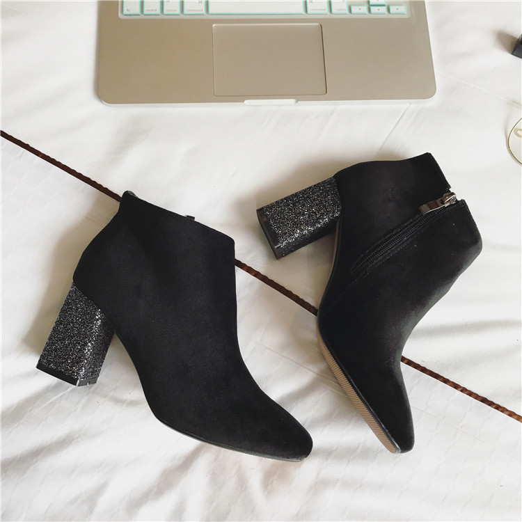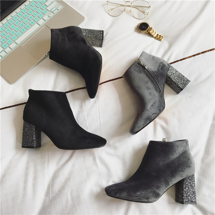 Новые дизайнерские зимние ботильоны; Блестящие ботинки на высоком каблуке