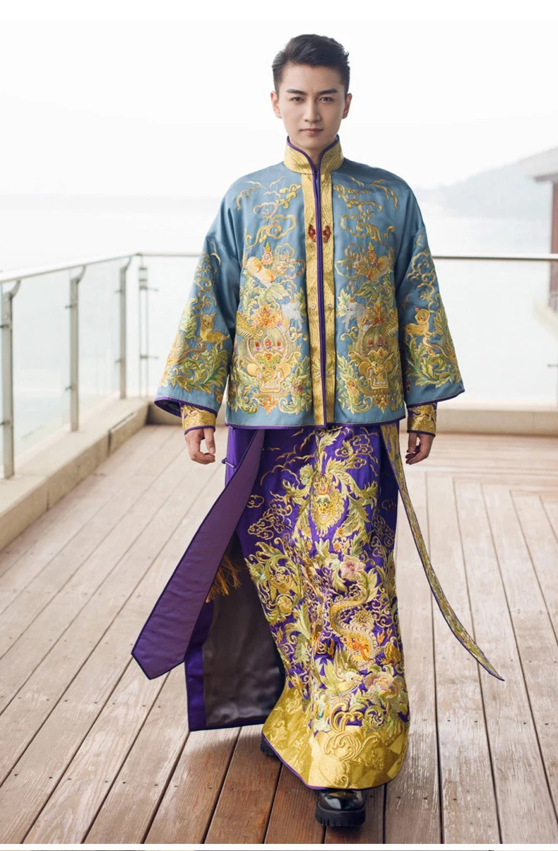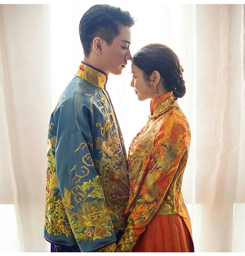 Свадебная китайская вечерняя одежда Традиционный китайский костюм мужской женский китайский халат с длинными рукавами костюм для выступлений традиционная китайская куртка дракон феникс