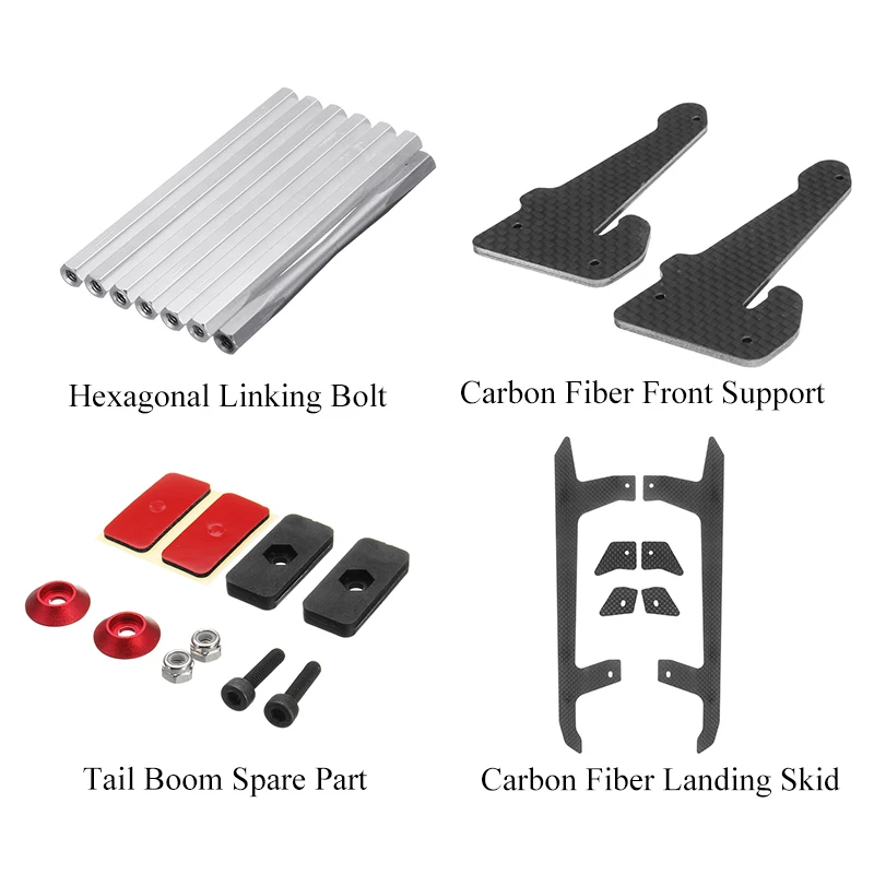 12. Посадочная площадка из углеродного волокна 2 мм В комплект входит: ● 2 X посадочная площадка из углеродного волокна-2,0 мм ● 2 X набор для посадки из углеродного волокна-Передняя-2,0 мм ● 2 X шасси из углеродного волокна Усиленный комплект-задний-2,0 мм 13. Запасные части для хвостовой стрелы B В комплект входит: ● Запасная часть хвостового стрелы-B(9X35x3,5 мм)-2 шт. ● 2 х бум Поддержка двусторонней ленты-B ● 4 X запорная гайка (м3) ● 4 винта головки разъема (m3x12 мм) ● 4 X винтовая Шайба-красный (m3x9 мм) 14. Основная рама из углеродного волокна 1,5 мм В комплект входит: ● Основная рама из углеродного волокна-1 шт. 15. Металлическое нейлоновое винтовое крепление ● 6061-T6 алюминиевый станок с ЧПУ. В комплект входит: ● Металлическое нейлоновое винтовое крепление-1 шт. ● Нейлоновая винтовая лента-1 шт. ● 2 нейлоновых винта (m8x14 мм) ● 2 X защитный замок из углеродного волокна (9x6,8x1,5 мм) ● 1 X винт головки разъема (M2x6 мм) 16. Звено управления В комплект входит: ● 2 канала управления ● 2 X ошейника A (Φ2xΦ3x3.3мм) ● 2 винта для головки гнезда (M2x6 мм) 17. Хвостовый колокольчик l-образное крепление Упаковка: ● 2 X хвостового колокольчика l-образного крепления ● 1 X винт головки разъема (m2.5x6 мм) ● 1 X винт головки разъема (m2.5x8мм) 18. Хвостовая боковая пластина из углеродного волокна В комплект входит: ● Хвостовая боковая пластина-1 шт. ● Фланцевый подшипник (Φ5x1313x4мм)-1 шт. 19. Основной шар сцепления с головкой ротора В комплект входит: ● 8 X шар сцепления M3(Φ4.70x10 мм) ● 1 X шар сцепления Swashplate M3 (M3 4.70x26мм) 20. Ремешок для батареи 20x500мм В комплект входит: ● Ремешок для аккумулятора (20X500 мм)-1 шт. 21. Вертикальный стабилизатор цвет стикер желтый В комплект входит: ● 1 X вертикальный цветной стабилизатор из углеродного волокна 22. Набор слайдеров с задним шагом В комплект входит: ● 1 X рычаг управления хвостом ● 1 X Хвостовая втулка ● 1 кольцо управления хвостовым шагом ● 2 фланцевых подшипника (Φ7x1111x2.5мм) ● 2 канала управления ● 2 X ошейника A (Φ2xΦ3x3.3мм) ● 2 винта для головки гнезда (M2x6 мм) 23. Металлический держатель ротора серебристого цвета ● 6061-T6 алюминиевый станок с ЧПУ. В комплект входит: ● 2 X Металлический Держатель хвостового ротора ● 4 подшипника (Φ4xΦ9x2.5мм) ● 2 упорных подшипника (Φ4x99x4мм) ● 2 шайбы (Φ7xΦ9x0.5мм) ● 2 X шар сцепления M2(Φ4.70x9.3 мм) ● 2 х гайки (м2) 24. Основная структура ● 6061-T6 алюминиевый станок с ЧПУ. В комплект входит: ● Основная структура-1 шт. ● 1 подшипник (Φ8xΦ16x5мм) ● 1 подшипник (Φ10x1919x5мм) ● Вес: Appro 76g