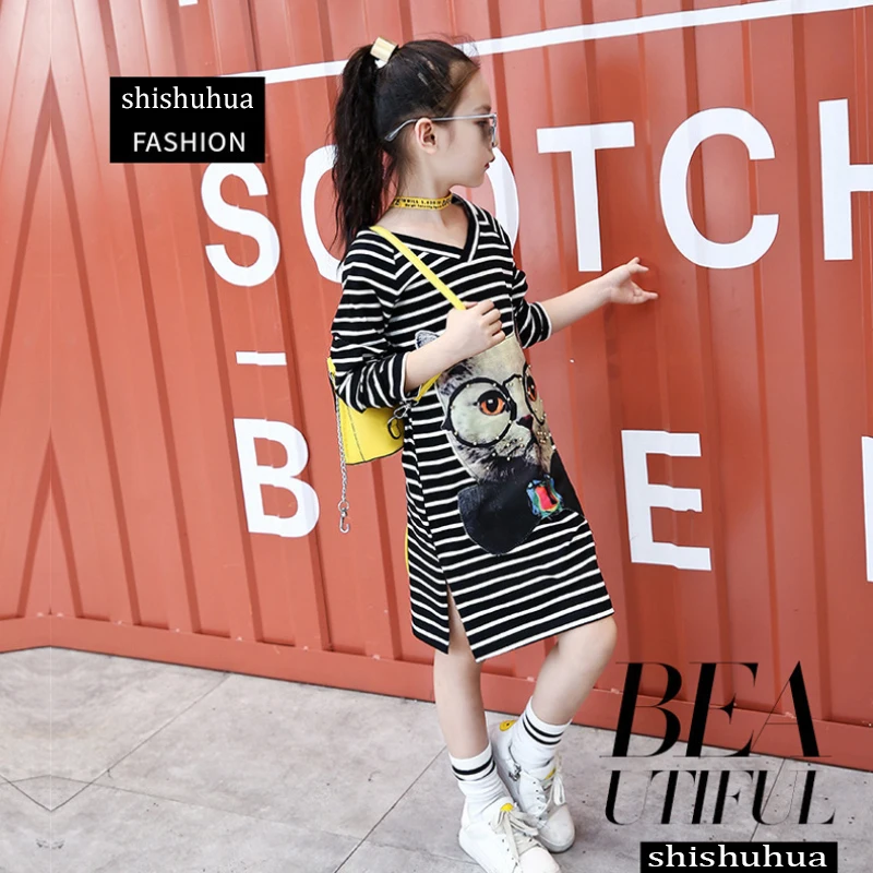 Одежда для девочек, платье с милым рисунком, плотные весенне-осенние полосатые платья принцессы От 3 до 9 лет г. Детская качественная одежда