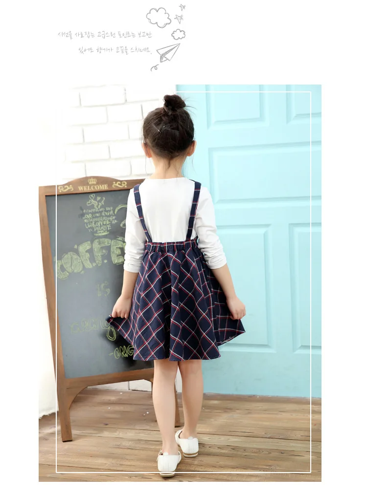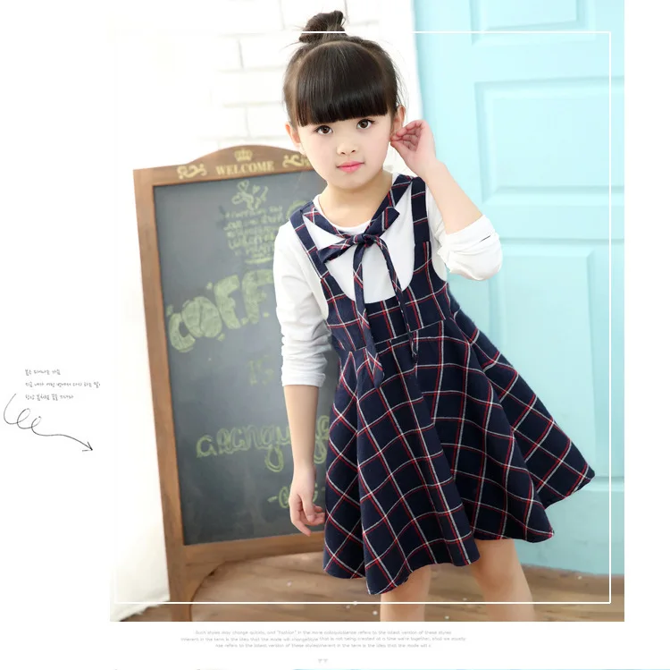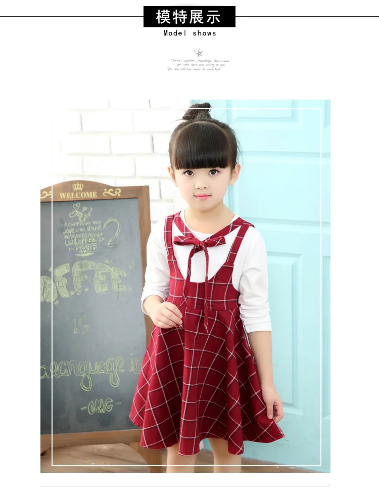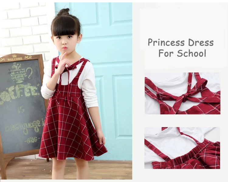 Product Name:2018 Autumn Girls Dress With Long Sleeves Blue Red Plaid Kids School Uniform Clothes For Teenager 5 6 7 8 9 10 11 12 Years