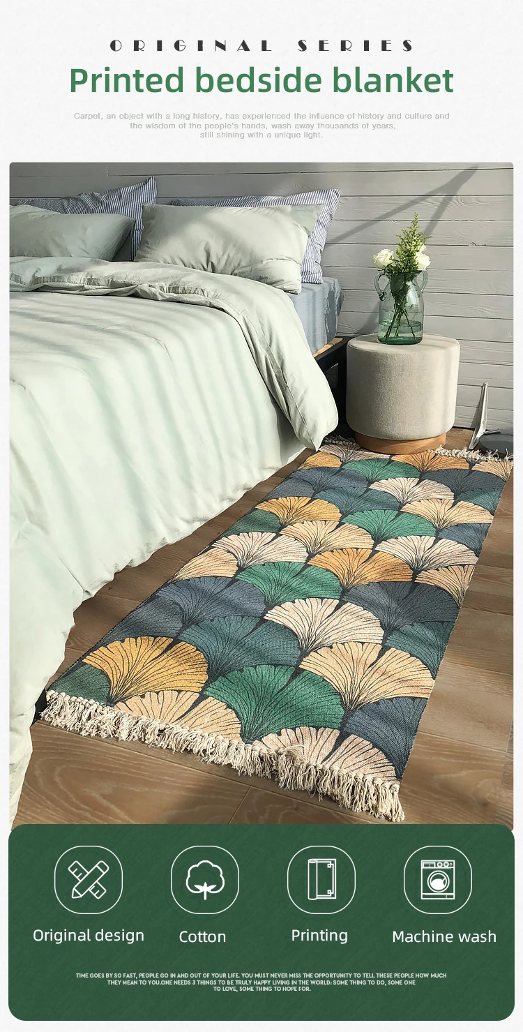 -Очень красивый и щедрый тканый коврик, ручная работа, долгое мастерство -Культура-это искусство. -Дизайн бахромы, добавляя чувство дизайна к коврику -Печать и окрашивание растений из хлопка и льна в сочетании с современной технологией печати и окрашивания, без выцветания, без формальдегида, более безопасные растительные материалы.