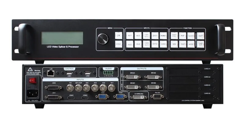 Светодиодный комбинированный процессор оснащен тремя мощными ядрами для обработки видео, многографическим многовходным интеллектуальным комбинированным процессором, который может широко использоваться в деятельности в области искусства, командном и контрольном центре, видеоконференции, гостиницах, судов и конференц-залов. В светодиодный сращивания процессора имеет 3-канальный выход, 2-х канальный для сплайсинга, 1 канал для контроля. Может достигать 2 × 1 или 1 × 2 канальный Гибридный с соединением внакрой, одно изделие может соединить 5,3 миллионов пикселей опеределяемый пользователем. Светодиодный комбинированный процессор может вместить широкий спектр входных источников, может получить доступ к 11 видео входам, включая 2 DVI, 2 HDML, 4 видео, 2 VGA и 1 SDI (опционально). Каждый канал может принимать стандартные разрешения или видео сигналы с высоким разрешением, DVI и VGA могут принимать до 1920 × 1200 @ 60 Гц разрешение вход, чтобы удовлетворить различные выход высокой четкости. Комбинированный процессор прост в использовании, с помощью панели клавиш и системы меню для завершения сложных настроек. Различные входные интерфейсы, для удовлетворения различных потребностей сигнала. Встроенный 4 светодиодный место установки карты отправки для удовлетворения требований к установке системы большого экрана.