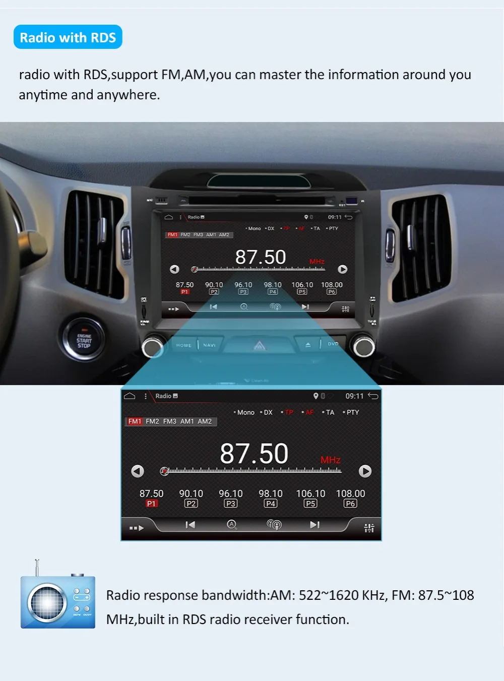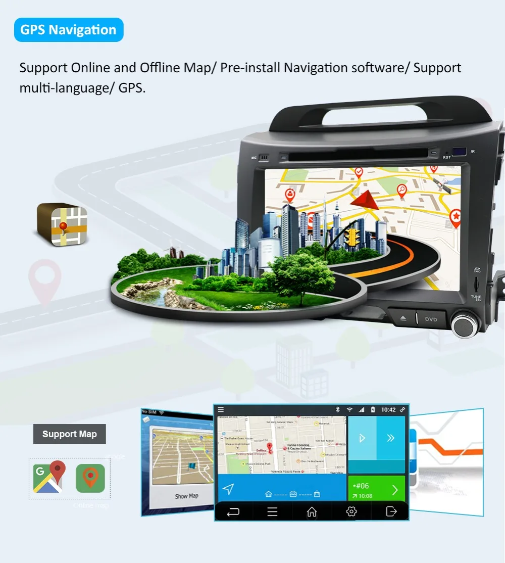 B. Бесплатный подарок: камера заднего вида, встроенная карта (карта встроена, не нужна sd-карта)C.T3, четырехъядерный процессор, RAM-2G, ROM-32G, 1,2 ГГц, BT: 5,0, AMP IC:7388, радио IC:7786Стандартные характеристики:Радио тюнер/RDS /FM/gps-навигация/Wifi /Bluetooth/Управление рулевым колесом/сплит-экран/USB /SD/сенсорный экран/1024*600/зеркальная связь/камера заднего вида/карта/Сабвуфер/DVD /CD-плеер (некоторые элементы не поддерживаются)Дополнительно:OBD,DAB,DSP,DVR,TMPS, камера, 3G /4G ключ, датчик парковки, цифровой ТВ-бокс, специальный кабель