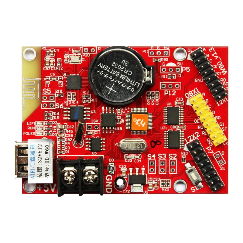 Светодиодный контроллер WIFI и u-диска Управляйте несколькими WIFI картами по подключениям к маршрутизаторам Поддержка температуры, влажности, яркости, дистанционного управления и т. Д. Поддержка 7-цветного дисплея, новая Обновленная карта шестого поколения, Поддержка градации, и региональные перекрытия