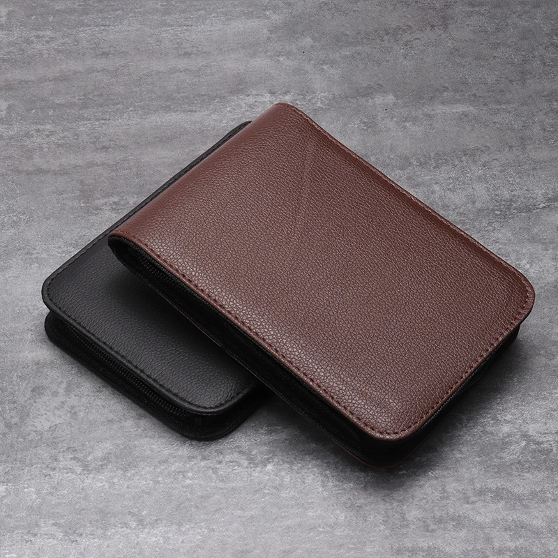 Качественный пенал из искусственной кожи, может вместить 12 ручек.