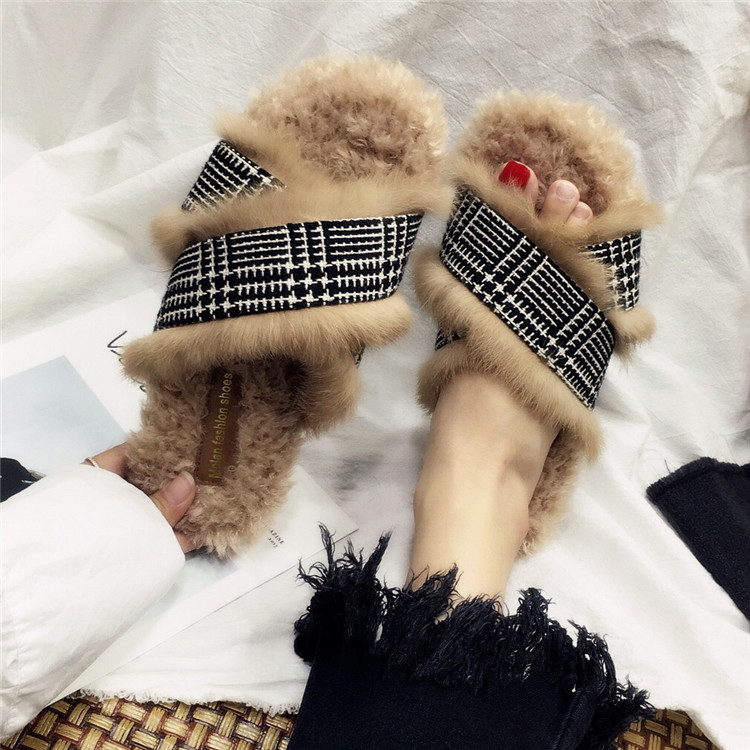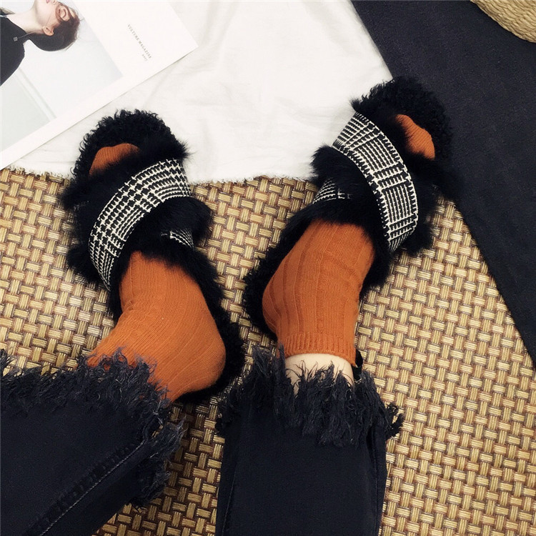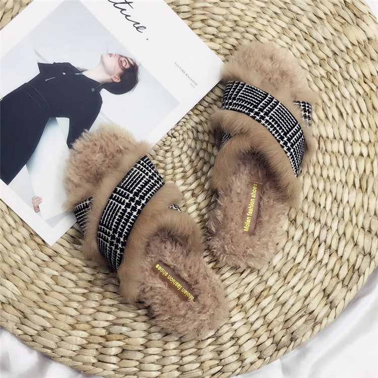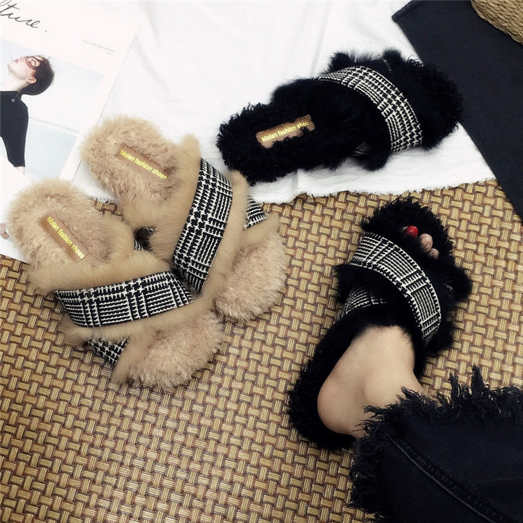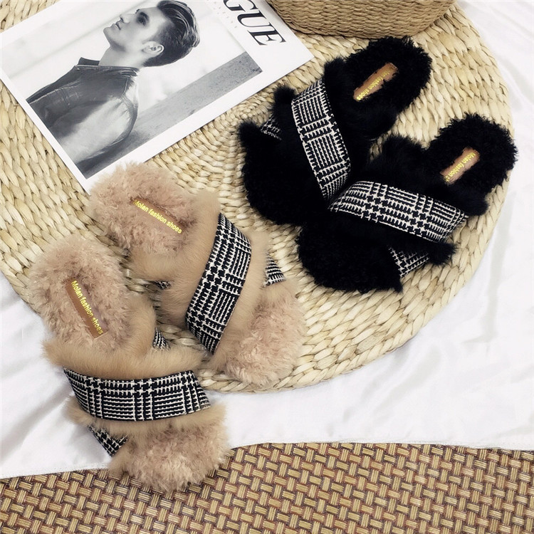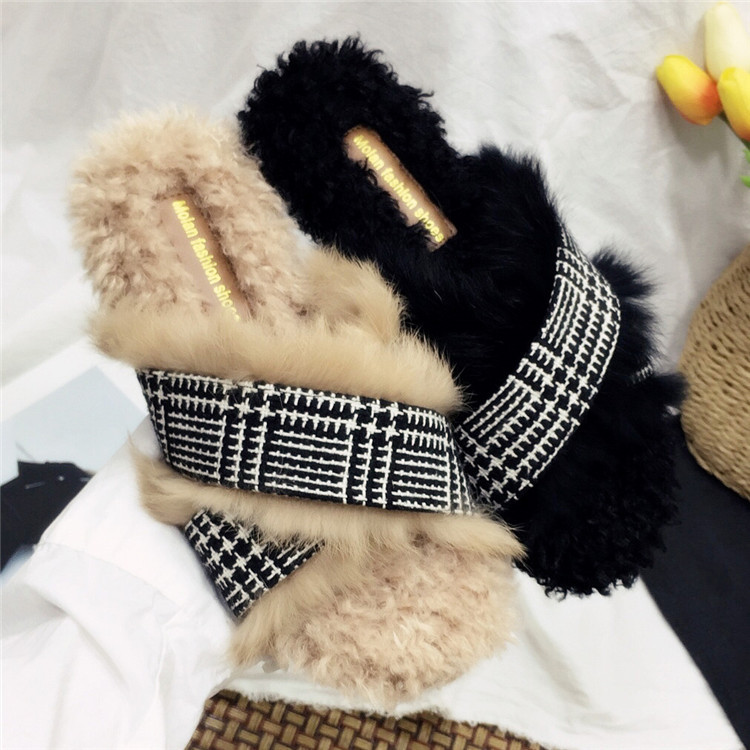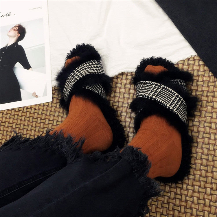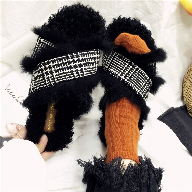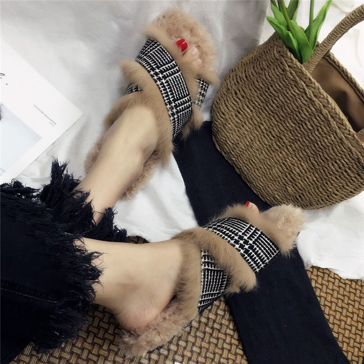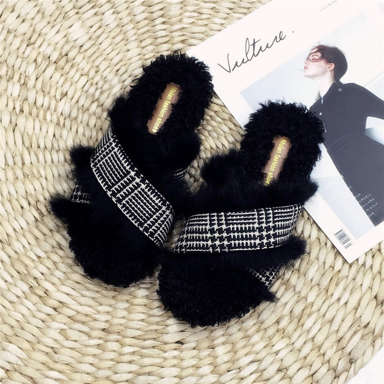 Модные дизайнерские женские меховые туфли без задника