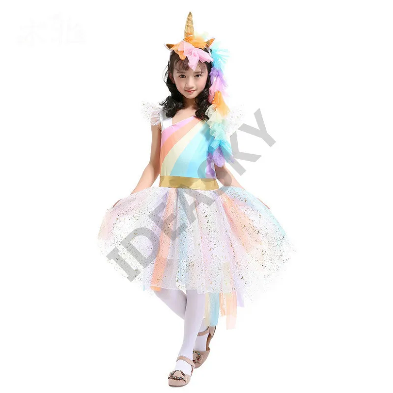 Костюм единорога; Детское платье с радужным единорогом; Детское платье-пачка для костюмированной вечеринки; Нарядные Костюмы для дня рождения и Хэллоуина для девочек; Костюм единорога