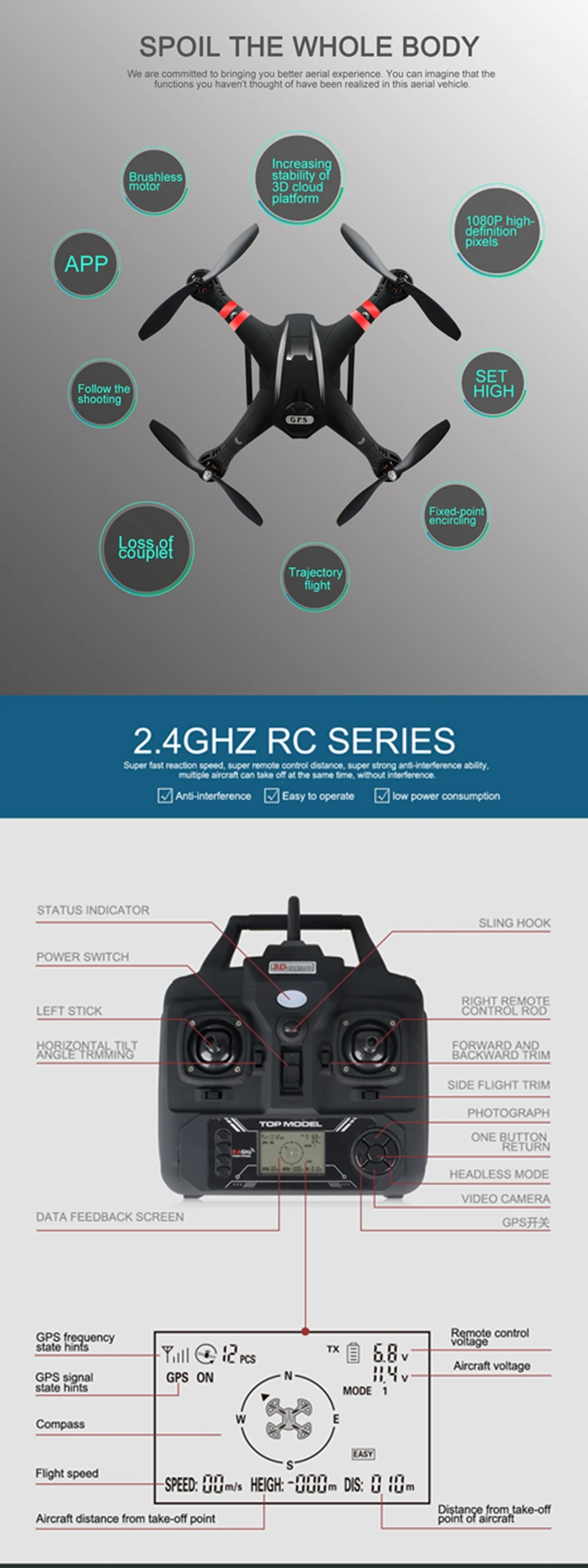 -Встроенная двойная система GPS, обеспечивает точное положение/удержание высоты, следуй за мной и Интересуйтесь на открытом воздухе.