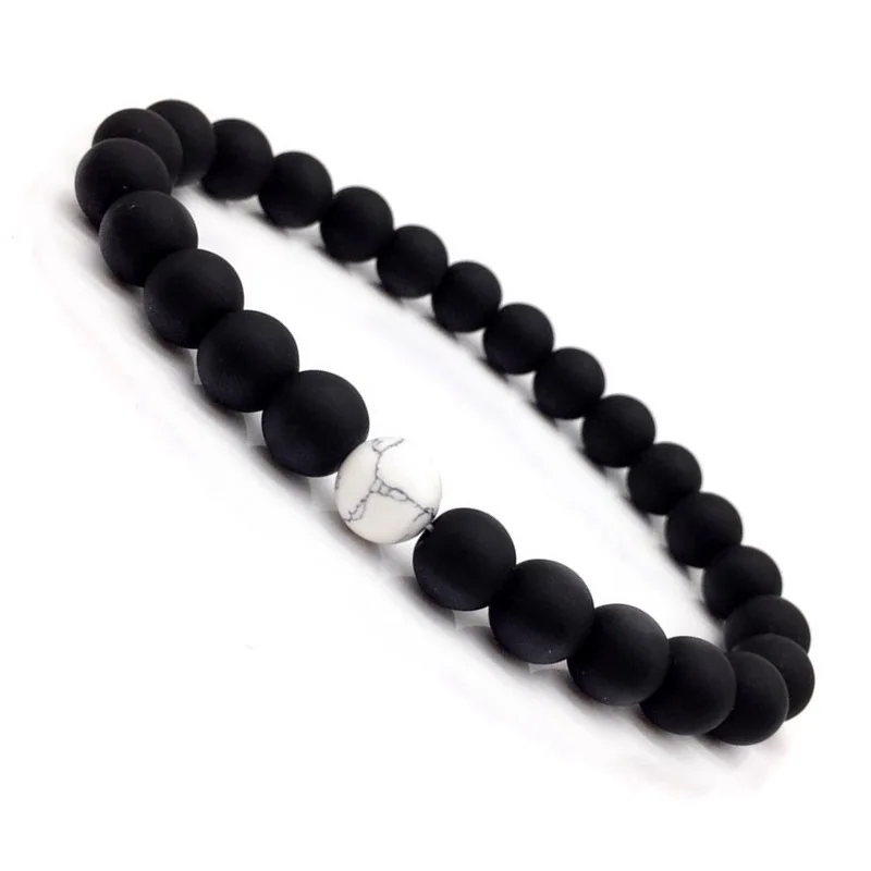 Черный камень Модный матовый черный и белый 8 мм натуральный камень браслет для мужчин и женщин ювелирные изделия браслеты для женщин браслет для мужчин