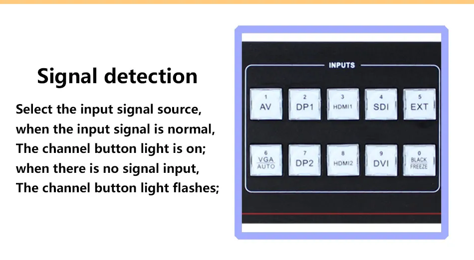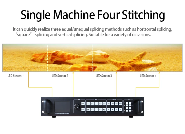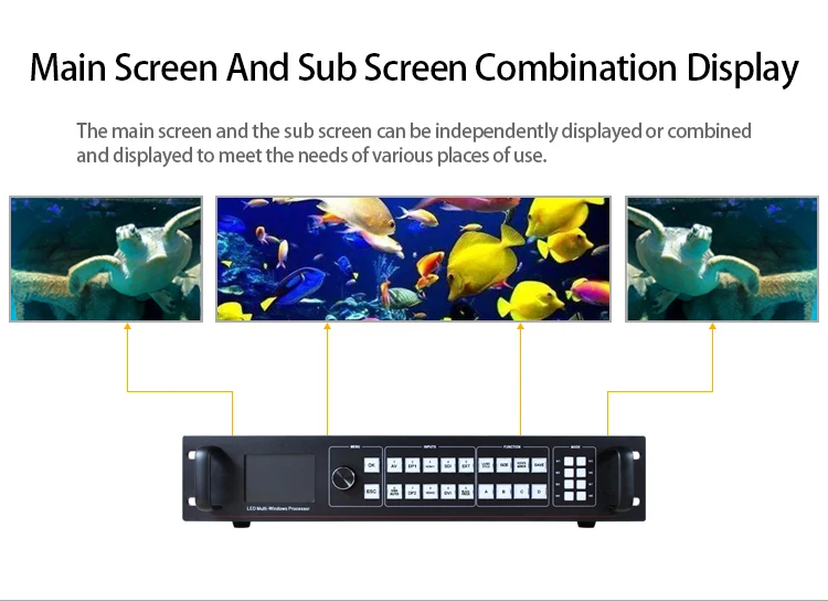 Бесшовное Переключение-светодиодный видеопроцессор также может легко переключаться между любыми каналами Переключение, время регулируется от 0 до 5,0 секунд. С эффектом выцветания, Переключайте Входной канал, так что экран может быть переключен плавно на второй экран. С использованием быстрого Переключение, переключение входных каналов; Вы можете мгновенно Переключить видеовыход
