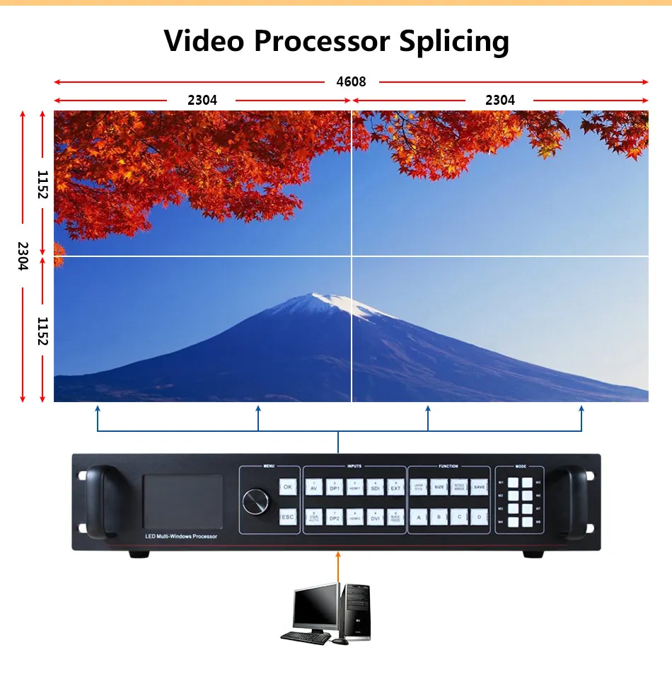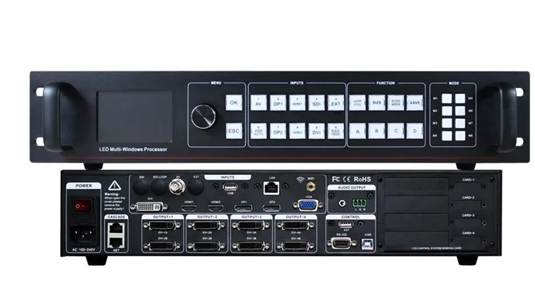 Это высококачественный 4-канальный мультиграфический комбинированный видеопроцессор 4K x 2K @ 60Hz, он может одновременно вводить 4K x 2K видео, и любое 4K x 2K видео может быть произвольно масштабировано и роуминг. Он может отвечать ультра-высоким требованиям к дисплею. Выход поддерживает индивидуальное решение, с переключением между дальним и канальный выход Поддержка 2,65 мегапикселя и четыре канала вывода до 10,6 Мпикс. Максимальное Сращивание составляет 4608 × 2304 или 9216 × 1152 или 4096 × 2304 или 1920 × 4800. Продукт поддерживает интеллектуальное Сращивание. Мастер установки прост в эксплуатации, пользователи могут быстро завершить работу. Продукт может вместить широкий спектр входных источников, до двух HDMI-4K, два DP-4K и поддержка ввода SDI. 4 независимых процессора изображений, 4 канала полностью настраиваемых входов, выбор 4 входов на светодиодный экран.