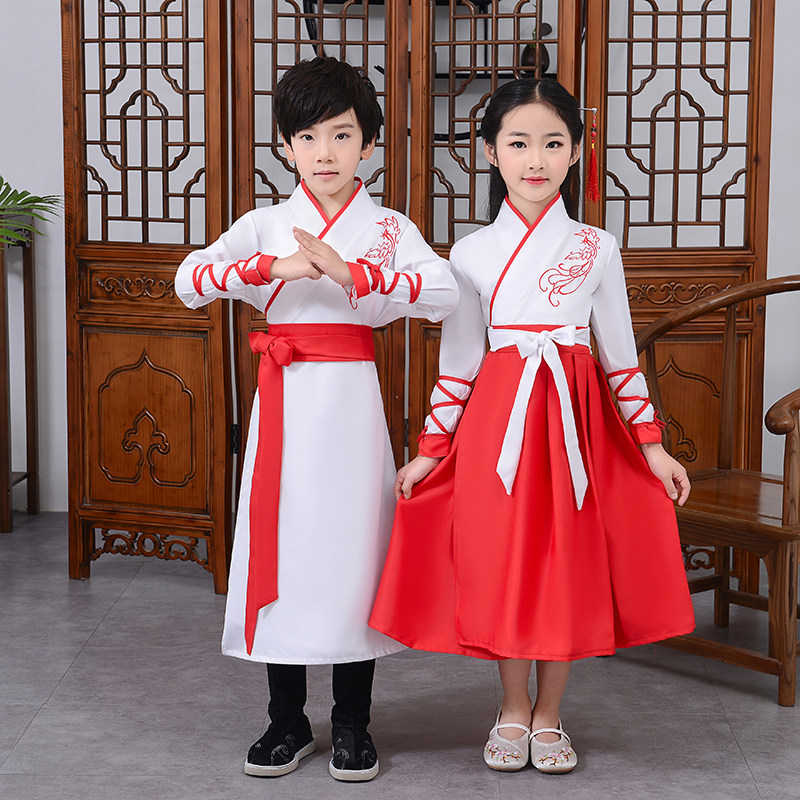Детский костюм в китайском стиле для мальчиков и девочек hanfu, Ретро стиль, Династия Тан, китайский древний костюм, детская традиционная танцевальная одежда